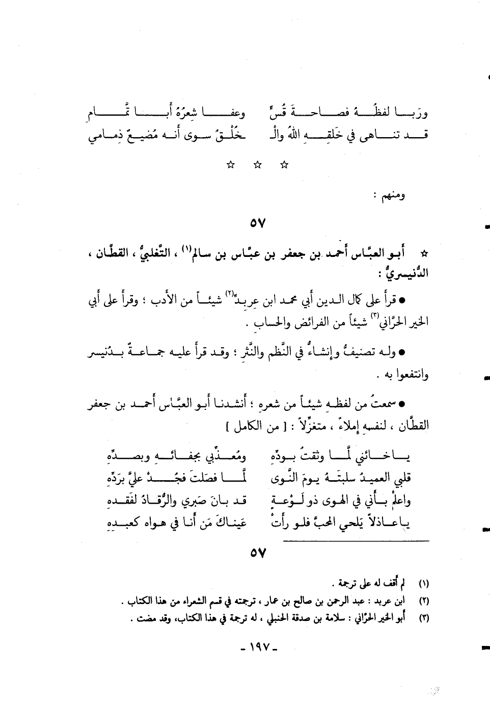 57- أَبُو الْعَبَّاسِ أَحْمَدُ بْنُ جَعْفَرِ بْنِ عَبَّاسِ بْنِ سالِمٍ، التَّغْلِبِيُّ، الْقَطَّانُ، الدُّنَيْسَرِيُّ: