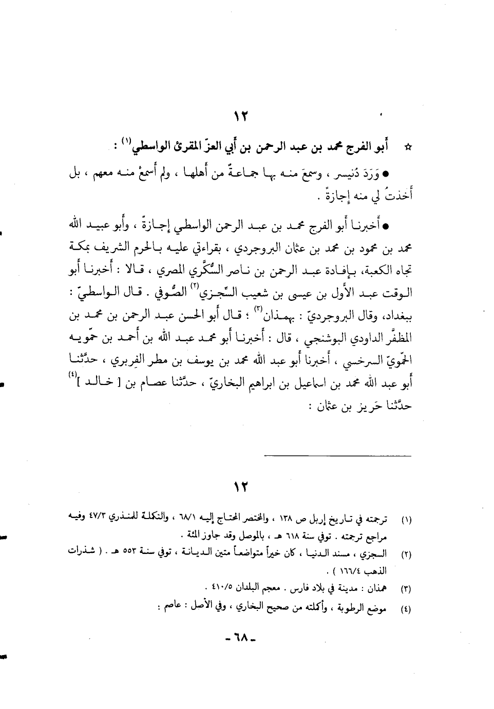 12- أَبُو الْفَرَجِ مُحَمَّدُ بْنُ عَبْدِ الرَّحْمَنِ بْنِ أَبِي الْعِزِّ الْمُقْرِئُ الْوَاسِطِيُّ: