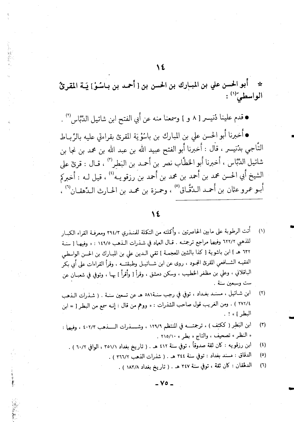 14- أَبُو الْحَسَنِ عَلِي بْنُ الْمُبَارَكِ بْنِ الْحَسَنِ بْنِ [أَحْمَدَ بْنِ باسو] ية الْمُقْرِئُ الْوَاسِطِيُّ: