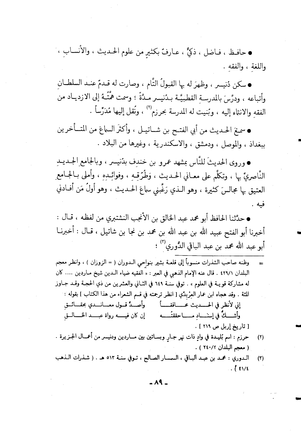 حَدَّثَنَا الْحَافِظُ أَبُو مُحَمَّدٍ عَبْدُ الْخَالِقِ بْنِ الأَنْجَبِ النَّشْتَبِرِّيُّ مِنْ لَفْظِهِ، قَالَ: أَخْبَرَنَا أَبُو الْفَتْحِ عُبَيْدُ اللَّهِ بْنُ عَبْدُ اللَّهِ بْنُ مُحَمَّدِ بْنِ نَجَا بْنِ شَاتِيلَ، قَالَ: أَخْبَرَنَا أَبُو عَبْدِ اللَّهِ مُحَمَّدُ بْنُ عَبْدِ الْبَاقِي الدُّورِيُّ؛