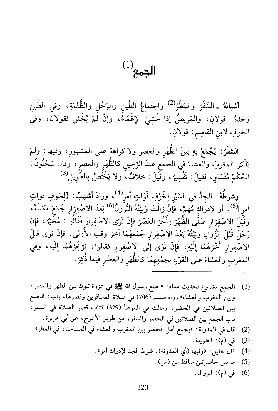 السَّفَرُ: يَجْمَعُ بِهِ بَيْنَ الظُّهْرِ وَالْعَصْرِ وَلا كَرَاهَةَ عَلَى الْمَشْهُورِ، وَفِيهَا: وَلَمْ يَذْكُرِ الْمَغْرِبَ وَالْعِشَاءَ فِي الْجَمْعِ عِنْدَ الرَّحِيلِ كَالظُّهْرِ وَالْعَصْرِ، وَقَالَ سَحْنُونٌ: الْحُكْمُ مُتَسَاوٍ، فَقِيلَ: تَفْسِيرٌ، وَقِيلَ: خِلافٌ، وَلا يَخْتَصُّ بِالطَّوِيلِ (¬1).