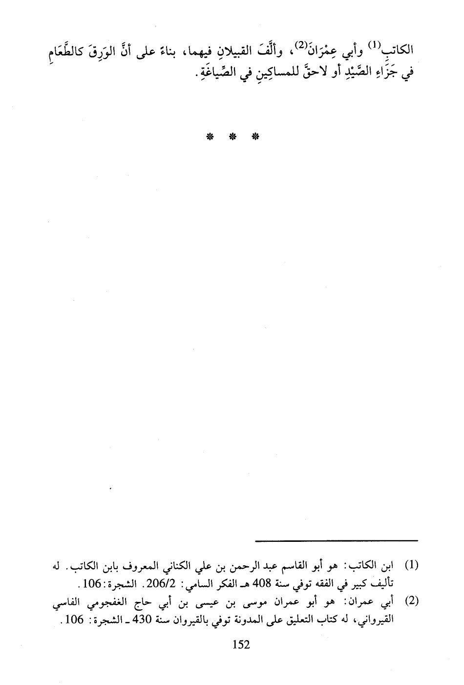 الْكَاتِبِ وَأَبِي عِمْرَانَ، وَأَلَّفَ الْقَبِيِلانِ فِيهِمَا، بِنَاءً عَلَى أَنَّ الْوَرِقَ كَالطَّعَامِ فِي جَزَاءِ الصَّيْدِ أَوْ لا حَقَّ لِلْمَسَاكِينِ فِي الصِّيَاغَةِ.