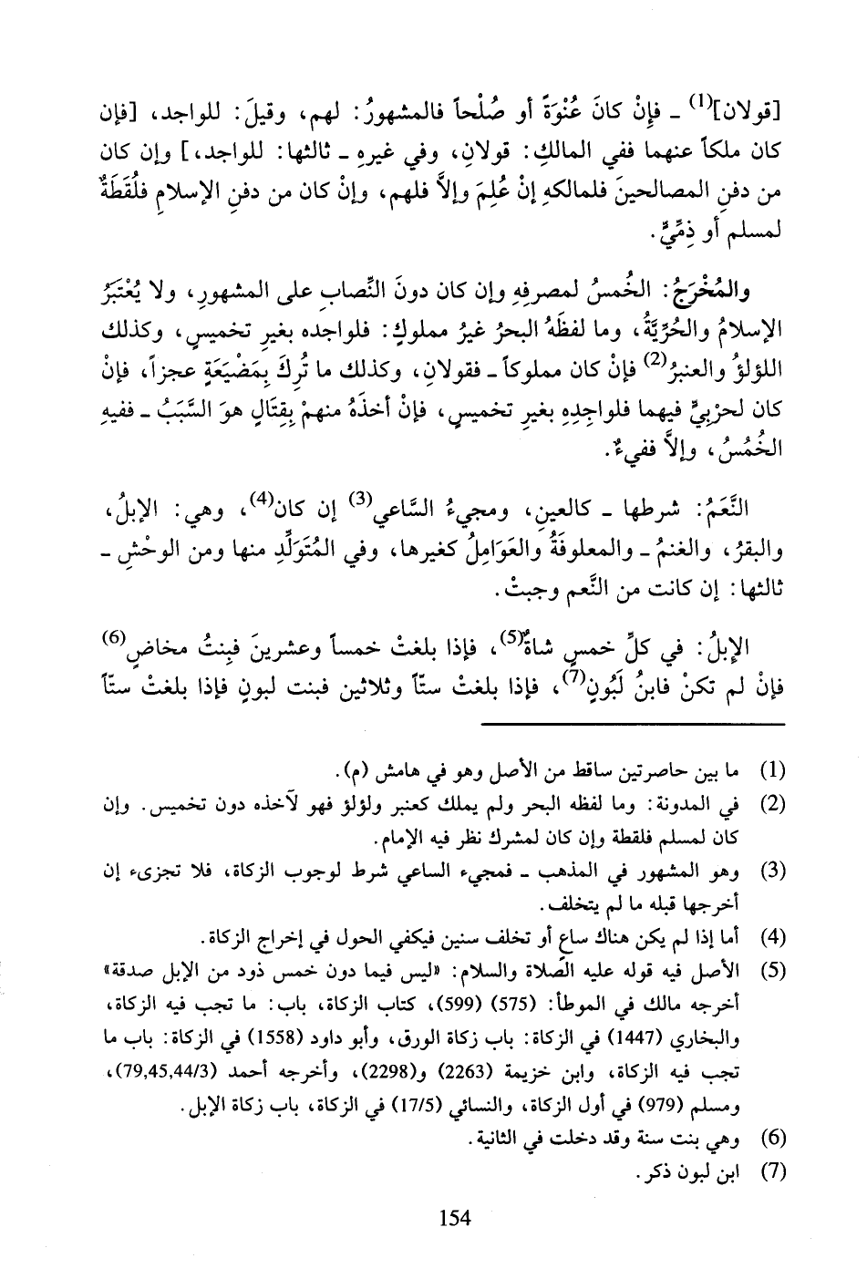 الإِبِلُ: فِي كُلِّ خَمْسٍ شَاةٌ، فَإِذَا بَلَغَتْ خَمْساً وَعِشْرِينَ فَبِنْتُ مَخَاضٍ فَإِنْ لَمْ تَكُنْ فَابْنُ لَبُونٍ، فَإِذَا بَلَغَتْ سِتّاً وَثَلاثِينَ فَبِنْتُ لَبُونٍ فَإِذَا بَلَغَتْ سِتّاً