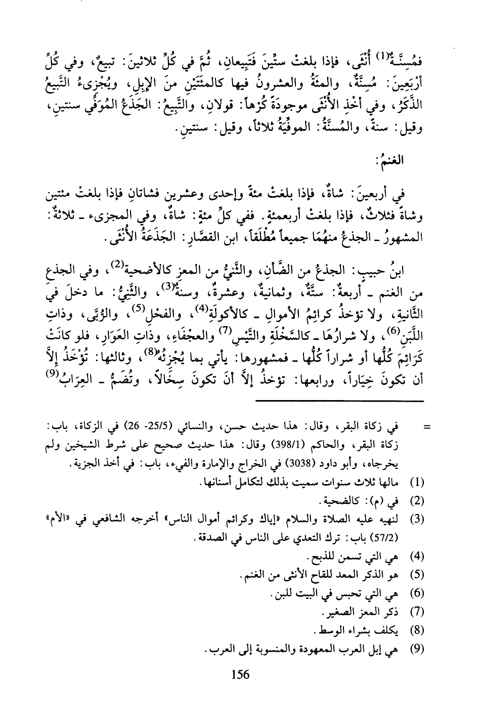 ابْنُ حَبِيبٍ: الْجَذَعُ مِنَ الضَّأْنِ، وَالثَّنِيُّ مِنَ الْمَعَزِ كَالأُضْحِيَّةِ (¬1)، وَفِي الْجَذَعِ مِنَ الْغَنَمِ - أَرْبَعَةٌ: سِتَّةٌ، وَثَمَانِيَةٌ، وَعَشَرَةٌ، وَسَنَةٌ، وَالثَّنِيَّ: مَا دَخَلَ فِي الثَّانِيَةِ، وَلا تُؤْخَذُ كَرَائِمُ الأَمْوَالِ - كَالأَكُولَةِ، وَالَفحْلِ، وَالرُّبَى، وَذَاتِ اللَّبَنِ، وَلا شِرَارُهَا - كَالسَّخْلَةِ وَالتَّيْسِ وَالْعَجْفَاءِ، وَذَاتِ الْعَوَارِ، فَلَوْ كَانَتْ كَرَائِمَ كُلُّهَا أَوْ شِرَاراً كُلُّهَا - فَمَشْهُورُهَا: يَأْتِي بِمَا يُجْزِئُهُ، وَثَالِثُهَا: تُؤْخَذُ إِلا أَنْ تَكُونَ خِيَاراً، وَرَابِعُهَا: تُؤْخَذُ إِلا أَنْ تَكُونَ سِخَالاً، وَتُضَمُّ - الْعِرَابُ