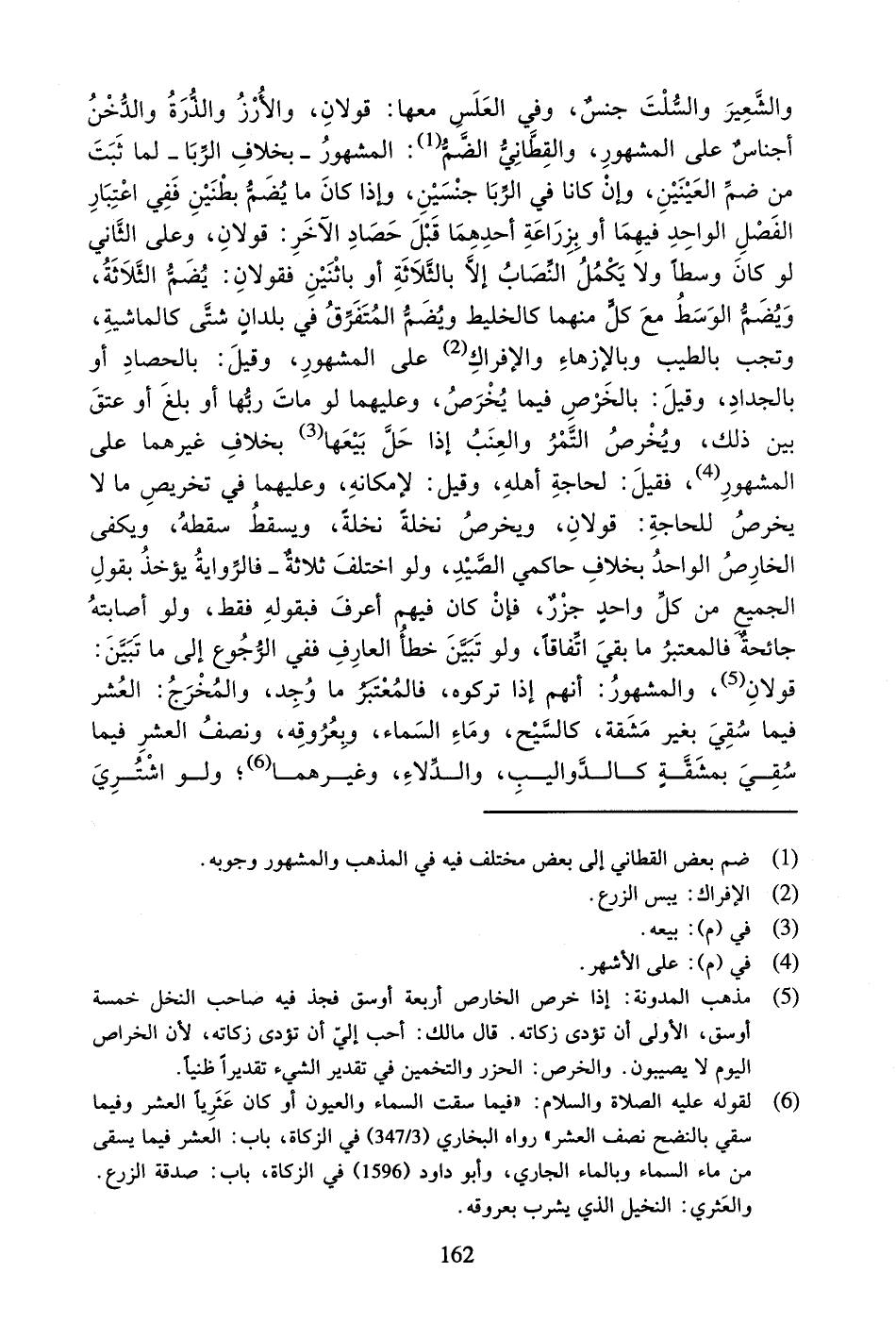 فَقِيلَ: لِحَاجَةِ أَهْلِهِ، وَقِيلَ: لإِمْكَانِهِ، وَعَلَيْهِمَا فِي تَخْرِيصِ مَا لا يُخْرَصُ لِلْحَاجَةِ: قَوْلانِ، وَيُخْرَصُ نَخْلَةً نَخْلَةً، وَيَسْقُطُ سَقْطُهُ، وَيَكْفِي الْخَارِصُ الْوَاحِدُ بِخِلافِ حَاكِمِي الصَّيْدِ، وَلَوِ اخْتَلَفَ ثَلاثَةٌ - فَالرِّوَايَةُ يُؤْخَذُ بِقَوْلِ الْجَمِيعِ مِنْ كُلِّ وَاحِدٍ جَزْرٌ، فَإِنْ كَانَ فِيهِمْ أَعْرَفَ فَبِقَوْلِهِ فَقَطْ، وَلَوْ أَصَابَتْهُ جَائِحَةٌ فَالْمُعْتَبَرُ مَا بَقِيَ اتِّفَاقاً، وَلَوْ تَبَيَّنَ خَطَأُ الْعَارِفِ فَفِي الرُّجُوعِ إِلَى مَا تَبَيَّنَ: قَوْلانِ، وَالْمَشْهُورُ: أَنَّهُمْ إِذَا تَرَكُوهُ، فَالْمُعْتَبَرُ مَا وُجِدَ، وَالْمُخْرَجُ: الْعُشْرُ فِيمَا سُقِيَ بِغَيْرِ مَشَقَّةٍ، كَالسَّيْحِ، وَمَاءِ السَّمَاءِ، وَبِعُرُوقِهِ، وَنِصْفُ الْعُشْرِ فِيمَا سُقِيَ بِمَشَقَّةٍ كَالدَّوَالِيبِ، وَالدِّلاءِ، وَغَيْرِهِمَا؛ وَلَوِ اشْتُرِيَ