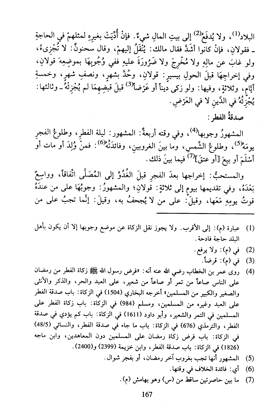 الْبِلادِ (¬1)، وَلا يُدْفَعُ (¬2) إِلَى بَيْتِ الْمَالِ شَيْءٌ. فَإِنْ أُدِّيَتْ بِغَيْرِهِ لِمِثْلِهِمْ فِي الْحَاجَةِ - فَقَوْلانِ، فَإِنْ كَانُوا أَشَدَّ فَقَالَ مَالِكٌ: يُنْقَلُ إِلَيْهِمْ، وَقَالَ سَحْنُونٌ: لا تُجْزِئُ، وَلَوْ غَابَ عَنْ مَالِهِ وَلا مُخْرِجَ وَلا ضَرُورَةَ عَلَيْهِ فَفِي وُجُوبهَا بِمَوْضِعِهِ قَوْلانِ، وَفِي إِخْرَاجِهَا قَبْلَ الْحَوْلِ بِيَسِيرٍ: قَوْلانِ، وَحُدَّ بِشَهْرٍ، وَنِصْفِ شَهْرٍ، وَخَمْسَةِ أَيَّامٍ، وَثَلاثَةٍ، وَفِيهَا: وَلَوْ زَكَّى دَيْناً أَوْ عَرْضاً (¬3) قَبْلَ قَبْضِهِمَا لَمْ يُجْزِئْهُ - وَثَالِثُهَا: يُجْزِئُهُ فِي الدَّيْنِ لا فِي الْعَرْضِ.