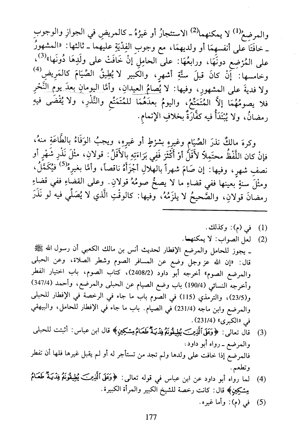وَالْمُرْضِعُ (¬1) لا يُمْكِنُهُمَا الاسْتِئْجَارُ أَوْ غَيْرُهُ - كَالْمَرِيضِ فِي الْجَوَازِ وَالْوُجُوبِ - خَافَتَا عَلَى أَنْفُسِهِمَا أَوْ وَلَدَيْهِمَا، مَعَ وُجُوبِ الْفِدْيَةِ عَلَيْهِمَا - ثَالِثُهَا: "الْمَشْهُورُ عَلَى الْمُرْضِعِ دُونَهَا، وَرَابِعُهَا: عَلَى الْحَامِلِ إِنْ خَافَتْ عَلَى وَلَدِهَا دُونَهَا"، وَخَامِسُهَا: إِنْ كَانَ قَبْلَ سِتَّةِ أَشْهُرٍ، وَالْكَبِيرُ لا يُطِيقُ الصِّيَامَ كَالْمَرِيضِ وَلا فِدْيَةَ عَلَى الْمَشْهُورِ، وَفِيهَا: لا يُصَامُ الْعِيدَانُ، وَأَمَّا الْيَوْمَانِ بَعْدَ يَوْمِ النَّحْرِ فَلا يَصُومُهُمَا إِلا الْمُتَمَتِّعُ، وَالْيَوْمُ بَعْدَهُمَا لِلْمُتَمَتِّعِ وَالنَّذْرِ، وَلا يُقْضَى فِيهِ رَمَضَانُ، وَلا يُبْتَدَأُ فِيهِ كَفَّارَةٌ بِخِلافِ الإِتْمَامِ.