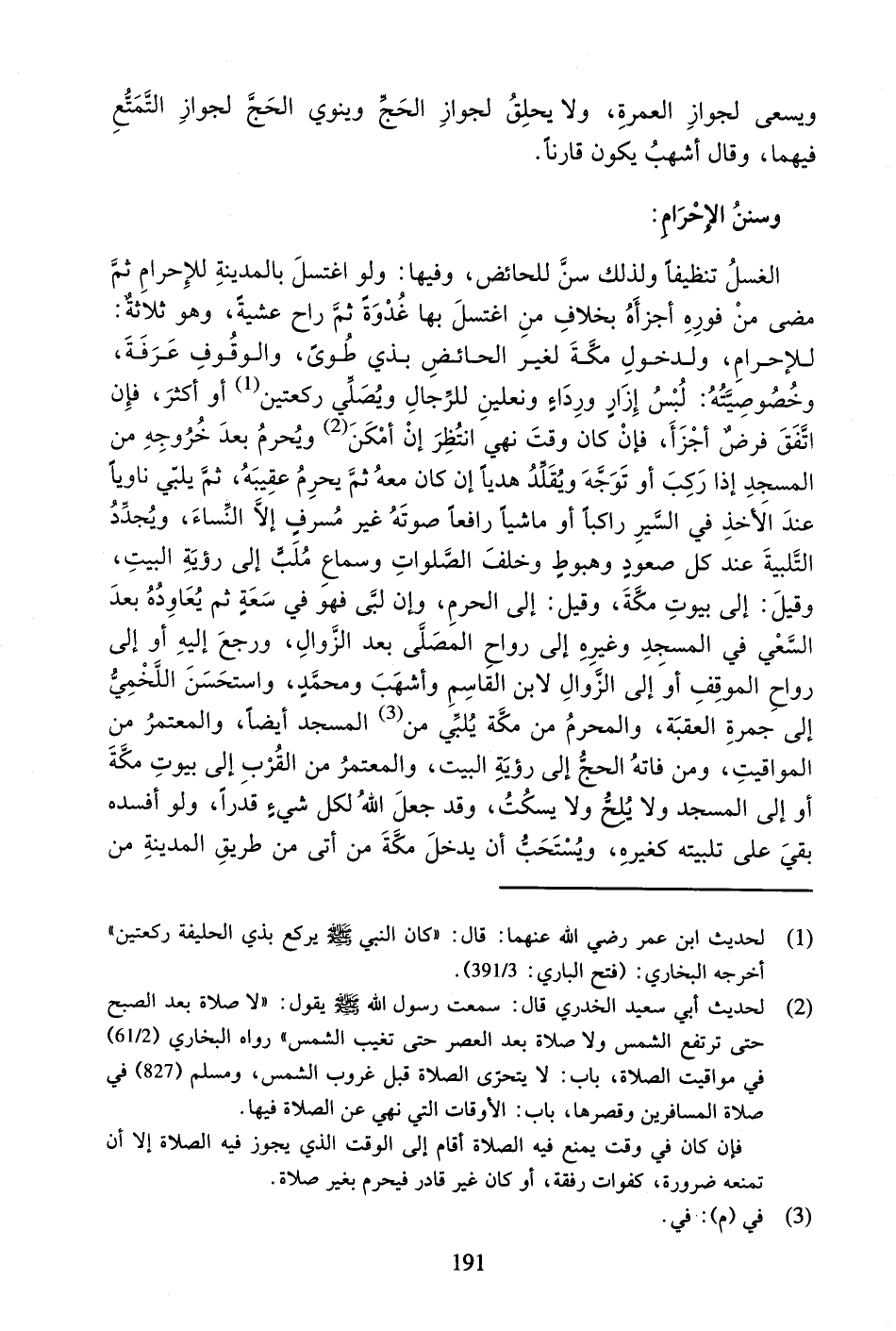وَسُنَنُ الإِحْرَامِ: