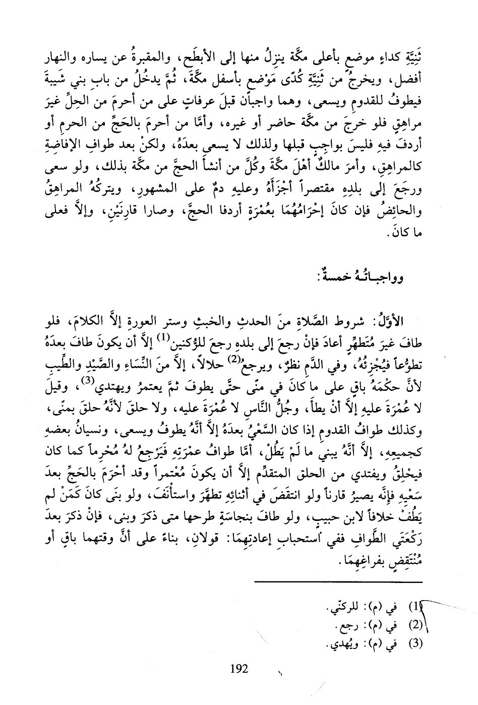 وَوَاجِبَاتُهُ خَمْسَةٌ: