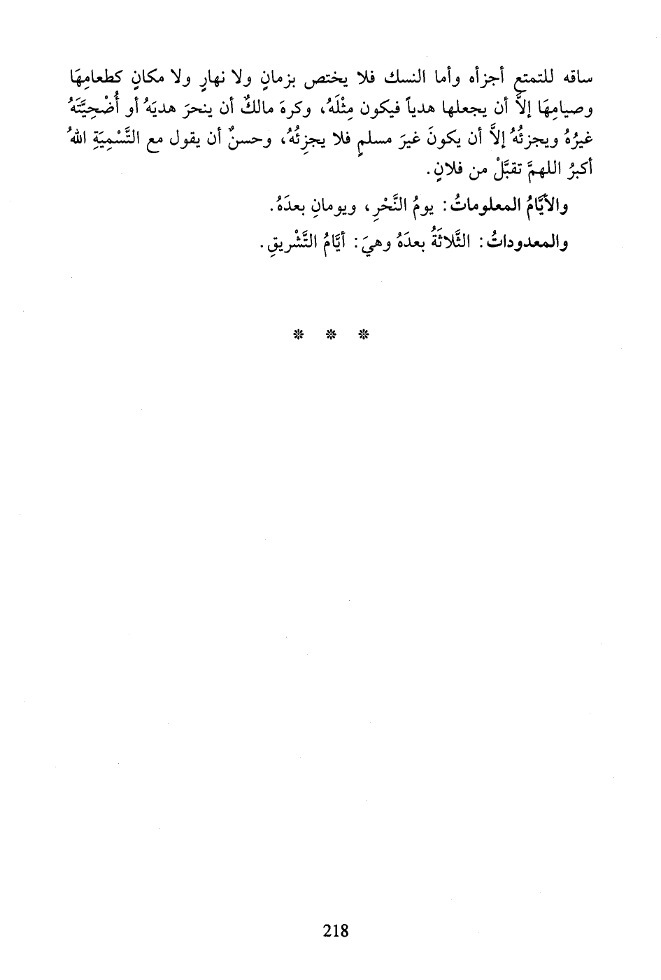 سَاقَهُ لِلتَّمَتُّعِ أَجْزَأَهُ وَأَمَّا النُّسُكُ فَلا يَخْتَصُّ بِزَمَانٍ وَلا نَهَارٍ وَلا مَكَانٍ كَطَعَامِهَا وَصِيَامِهَا إِلا أَنْ يَجْعَلَهَا هَدْياً فَيَكُونَ مِثْلَهُ، وَكَرِهَ مَالِكٌ أَنْ يَنْحَرَ هَدْيَهُ أَوْ أُضْحَيِتَّهُ غَيْرُهُ وَيُجْزِئُهُ إِلا أَنْ يَكُونَ غَيْرَ مُسْلِمٍ فَلا يُجْزِئُهُ، وَحَسَنٌ أَنْ يَقُولَ مَعَ التَّسْمِيَةِ اللَّهُ أَكْبَرُ اللَّهُمَّ تَقَبَّلْ مِنْ فُلانٍ.