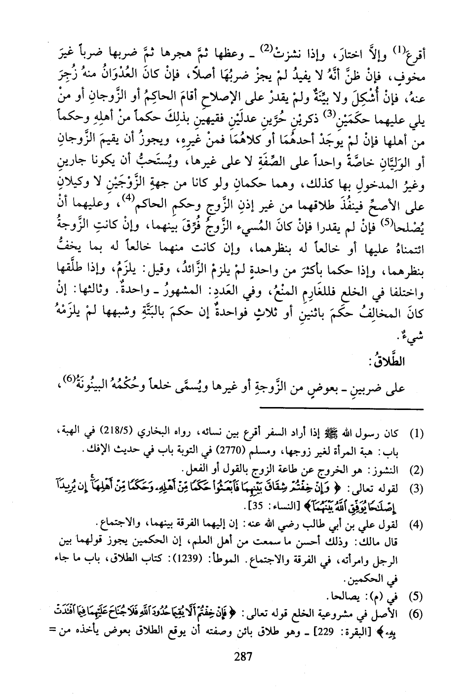 أَقْرَعَ وَإِلا اخْتَارَ، وَإِذَا نَشَزَتْ - وَعَظَهَا ثُمَّ هَجَرَهَا ثُمَّ ضَرَبَهَا ضَرْباً غَيْرَ مَخُوفٍ، فَإِنْ ظَنَّ أَنَّهُ لا يُفِيدُ لَمْ يَجُزْ ضَرْبُهَا أَصْلاً، فَإِنْ كَانَ الْعُدْوَانُ مِنْهُ زُجِرَ عَنْهُ، فَإِنْ أَشْكَلَ وَلا بَيِّنَةَ وَلَمْ يَقْدِرْ عَلَى الإِصْلاحِ أَقَامَ الْحَاكِمُ أَوِ الزَّوْجَانِ أَوْ مَنْ يَلِي عَلَيْهِمَا حُكْمَيْنِ ذَكَرَيْنِ حُرَّيْنِ عَدْلَيْنِ فَقِيهَيْنِ بِذَلِكَ حَكَماً مِنْ أَهْلِهِ وَحَكَماً مِنْ أَهْلِهَا فَإِنْ لَمْ يُوجَدْ أَحَدُهُمَا أَوْ كِلاهُمَا فَمِنْ غَيْرِهِ، وَيَجُوزُ أَنْ يُقِيمَ الزَّوْجَانِ أَوِ الْوَلِيَّانِ خَاصَّةً وَاحِداً عَلَى الصِّفَةِ لا عَلَى غَيْرِهَا، وَيُسْتَحَبُّ أَنْ يَكُونَا جَارَيْنِ وَغَيْرُ الْمَدْخُولِ بِهَا كَذَلِكَ، وَهُمَا حَكَمَانِ وَلَوْ كَانَا مِنْ جِهَةِ الزَّوْجَيْنِ لا وَكِيلانِ عَلَى الأَصَحِّ فَيَنْفُذُ طَلاقُهُمَا مِنْ غَيْرِ إِذْنِ الزَّوْجِ وَحُكْمِ الْحَاكِمِ، وَعَلَيْهِمَا أَنْ يُصْلِحَا (¬1)