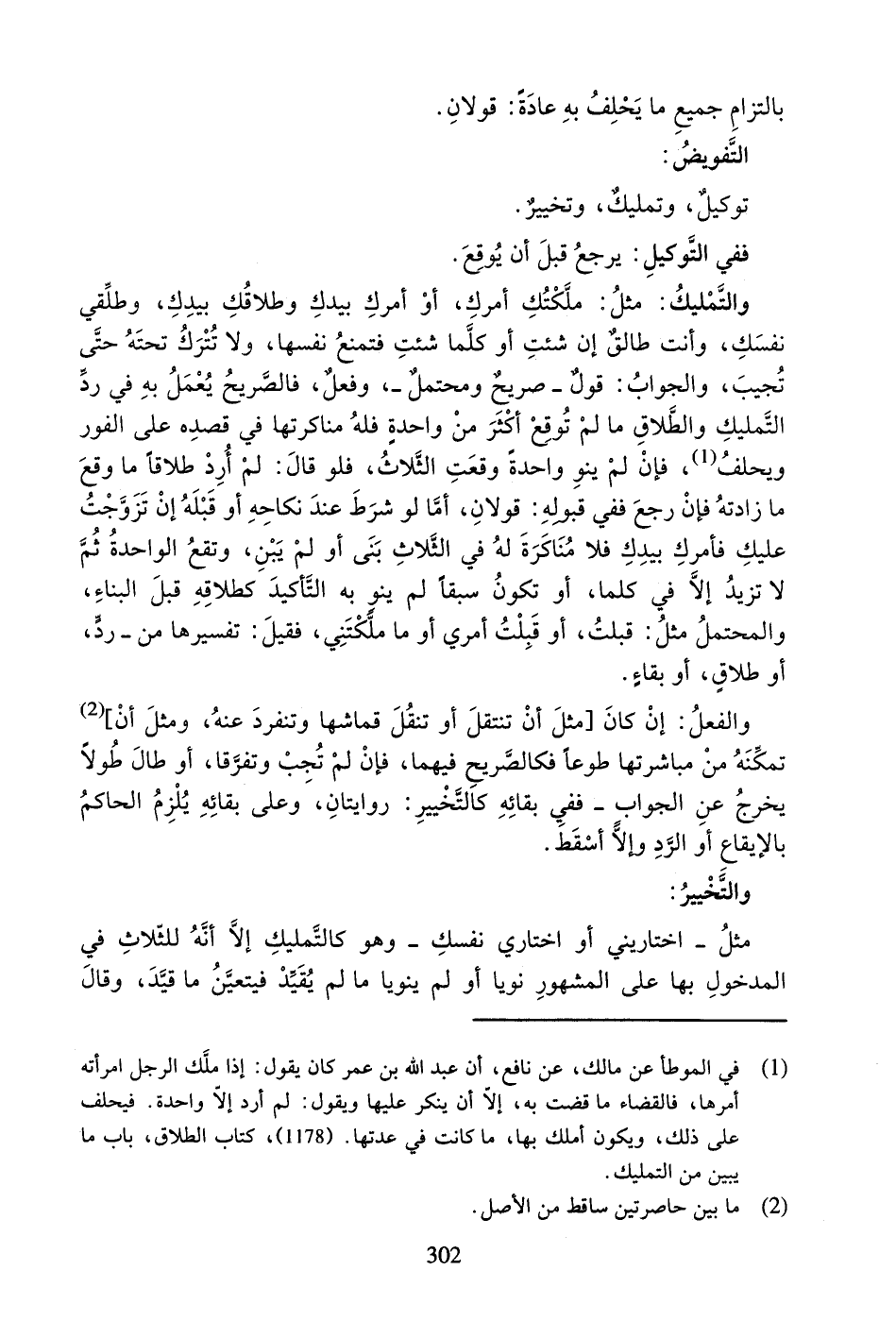 تَوْكِيلٌ، وَتَمْلِيكٌ، وَتَخْيِيرٌ.
