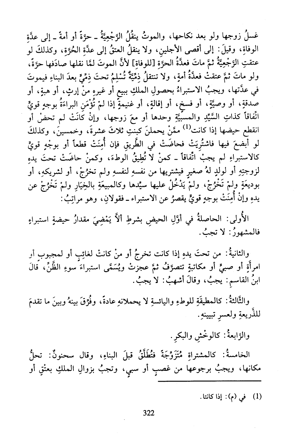 الأُولَى: الْحَاصِلَةُ فِي أَوَّلِ الْحَيْضِ بِشَرْطِ أَلا يَمْضِيَ مِقْدَارُ حَيْضَةِ اسْتِبْرَاءٍ فَالْمَشْهُورُ: لا تَجِبُ.