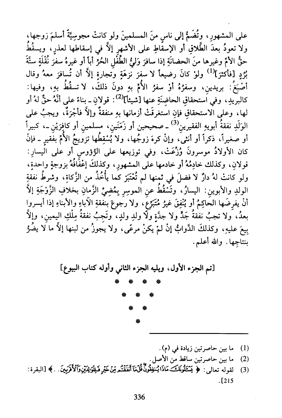 [تَمَّ الْجُزْءُ الأَوَّلُ، وَيَلِيهُ الْجُزْءُ الثَّانِي وَأَوَّلُهُ كِتَابُ الْبُيُوعِ]