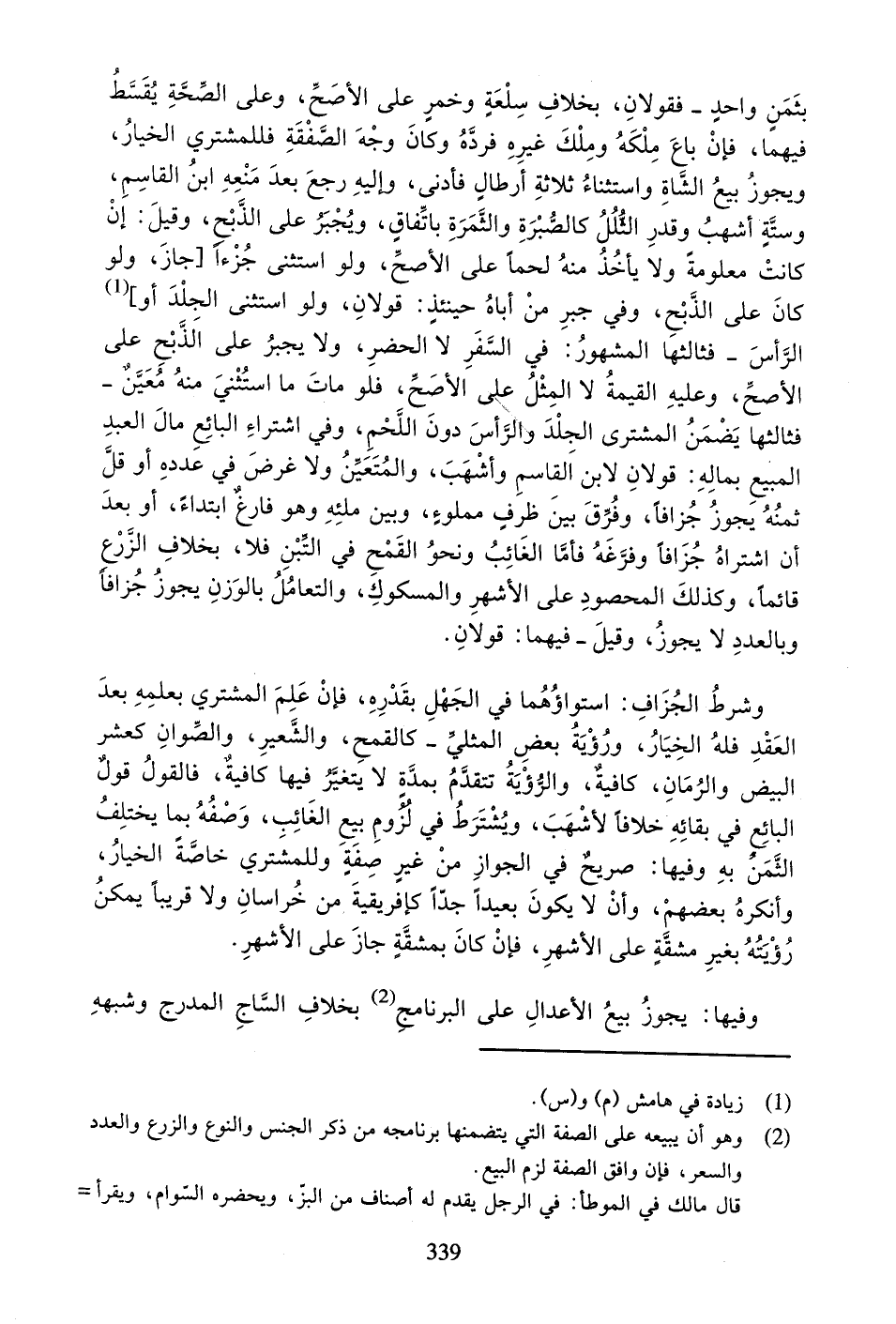 وَفِيهَا: يَجُوزُ بَيْعُ الأَعْدَالِ عَلَى الْبَرْنَامَجِ بِخِلافِ السَّاجِ الْمُدْرَجِ وَشِبْهِهِ