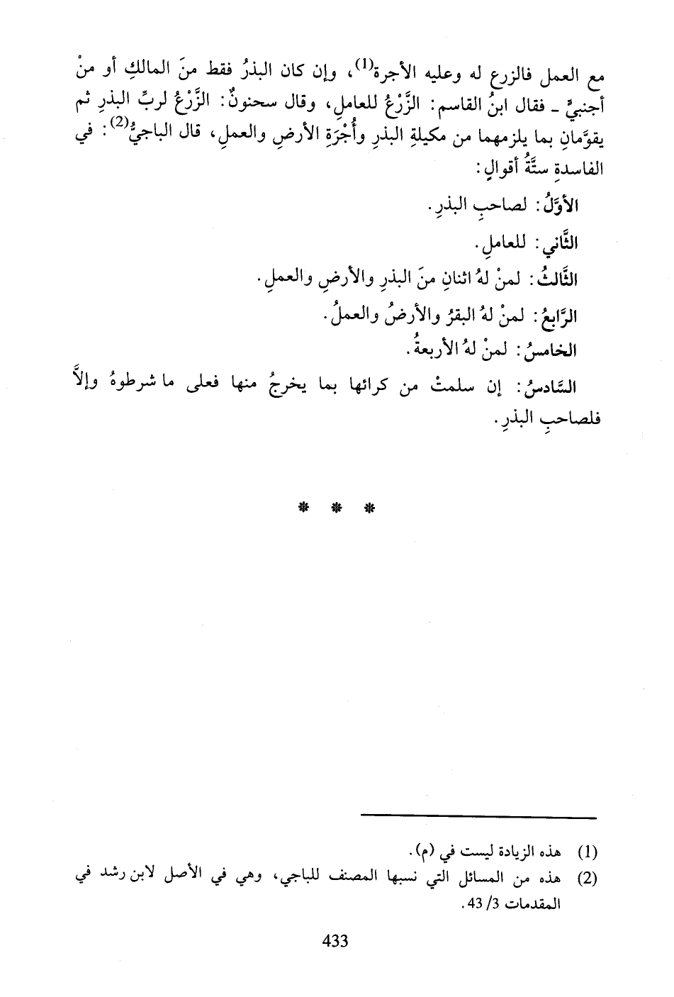 الثَّالِثُ: لِمَنْ لَهُ اثْنَانِ مِنَ الْبَذْرِ وَالأَرْضِ وَالْعَمَلِ.