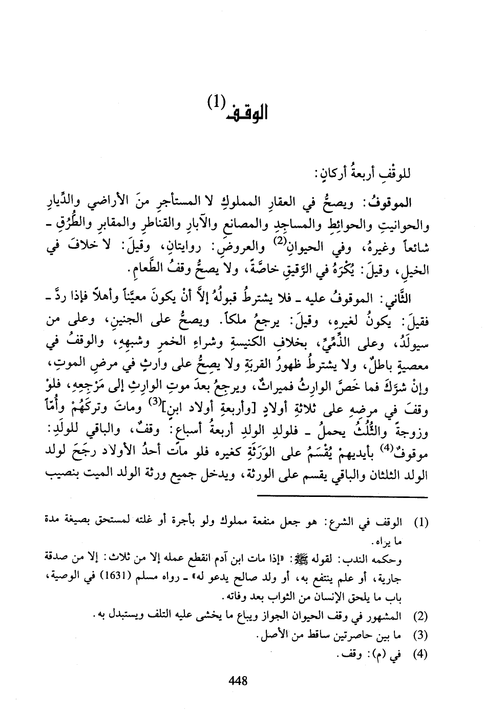 لِلْوَقْفِ أَرْبَعَةُ أَرْكَانٍ: