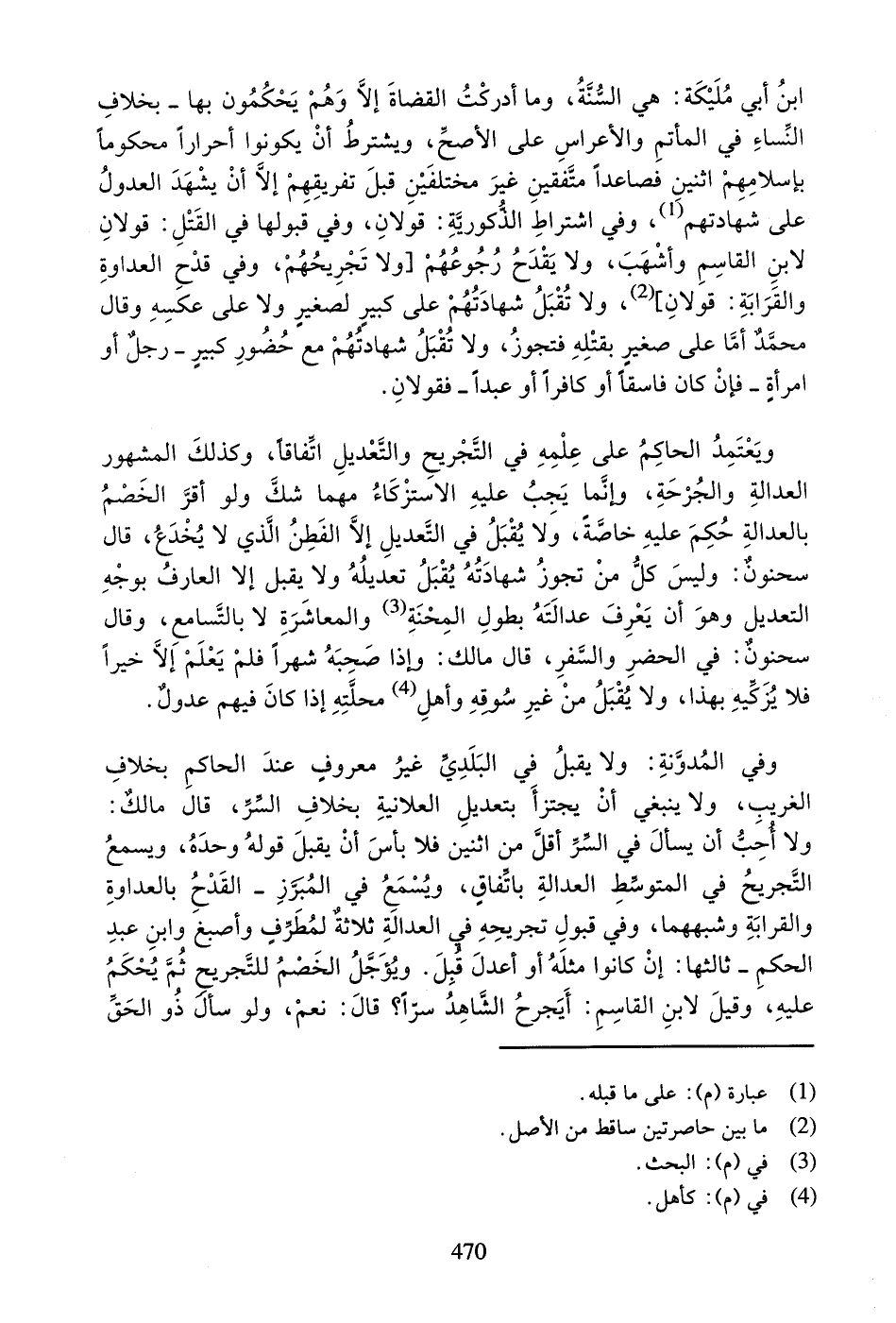 ابْنُ أَبِي مُلَيْكَةَ: هِيَ السُّنَّةُ، وَمَا أَدْرَكْتُ الْقُضَاةَ إِلا وَهُمْ يَحْكُمُونَ بِهَا - بِخِلافِ النِّسَاءِ فِي الْمَأْتَمِ وَالأَعْرَاسِ عَلَى الأَصَحِّ - وَيُشْتَرَطُ أَنْ يَكُونُوا أَحْرَاراً مَحْكُوماً بِإِسْلامِهِمُ اثْنَيْنِ فَصَاعِداً مُتَّفِقَيْنِ غَيْرَ مُخْتَلِفَيْنِ قَبْلَ تَفْرِيقِهِمْ إِلا أَنْ يَشْهَدَ الْعُدُولُ عَلَى شَهَادَتِهِمْ (¬1)،