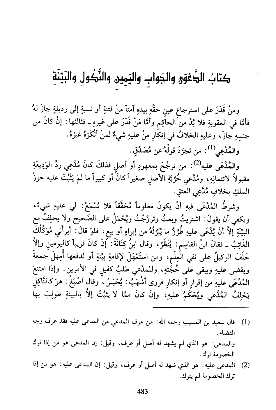 كِتَابُ الدَّعْوَى وَالْجَوَابِ وَالْيَمِينِ وَالنُّكُولِ وَالْبَيِّنَةِ