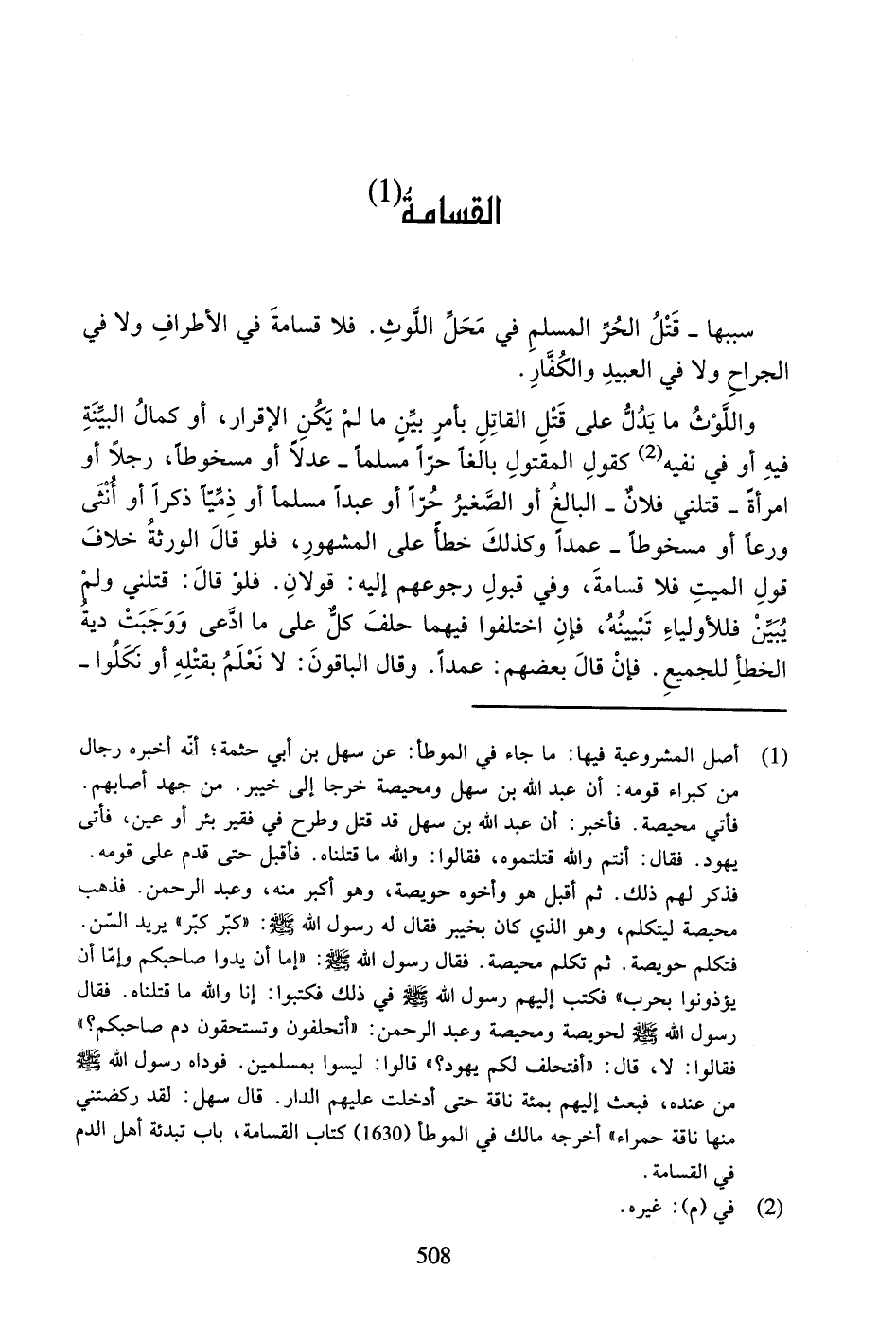 سَبَبُهَا - قَتْلُ الْحُرِّ الْمُسْلِمِ فِي مَحَلِّ اللَّوْثِ. فَلا قَسَامَةَ فِي الأَطْرَافِ وَلا فِي الْجِرَاحِ وَلا فِي الْعَبِيدِ وَالْكُفَّارِ.