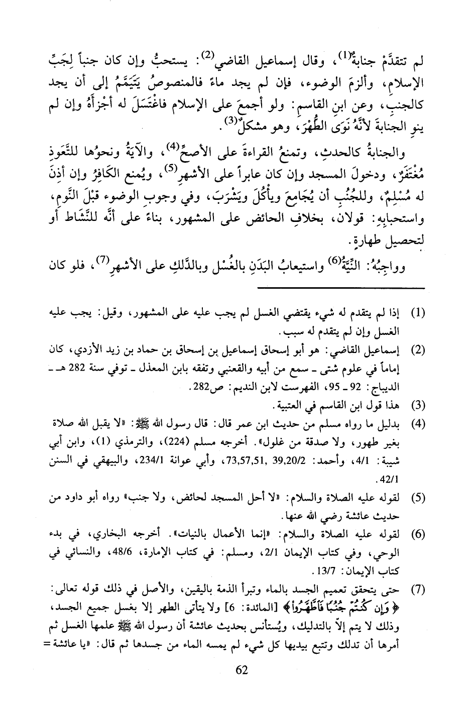 لَمْ تَتَقَدَّمْ جَنَابَةٌ، وَقَالَ إِسْمَاعِيلُ الْقَاضِي: يُسْتَحَبُّ وَإِنْ كَانَ جُنُباً لِجَبِّ الإِسْلامِ، وَأُلْزِمَ الْوُضُوءَ، فَإِنْ لَمْ يَجِدْ مَاءً فَالْمَنْصُوصُ يَتَيَمَّمُ إِلَى أَنْ يَجِدَ كَالْجُنُبِ، وَعَنِ ابْنِ الْقَاسِمِ: وَلَوْ أَجْمَعَ عَلَى الإِسْلامِ فَاغْتَسَلَ لَهُ أَجْزَأَهُ وَإِنْ لَمْ يَنْوِ الْجَنَابَةَ لأَنَّهُ نَوَى الطُّهْرَ، وَهُوَ مُشْكِلٌ.