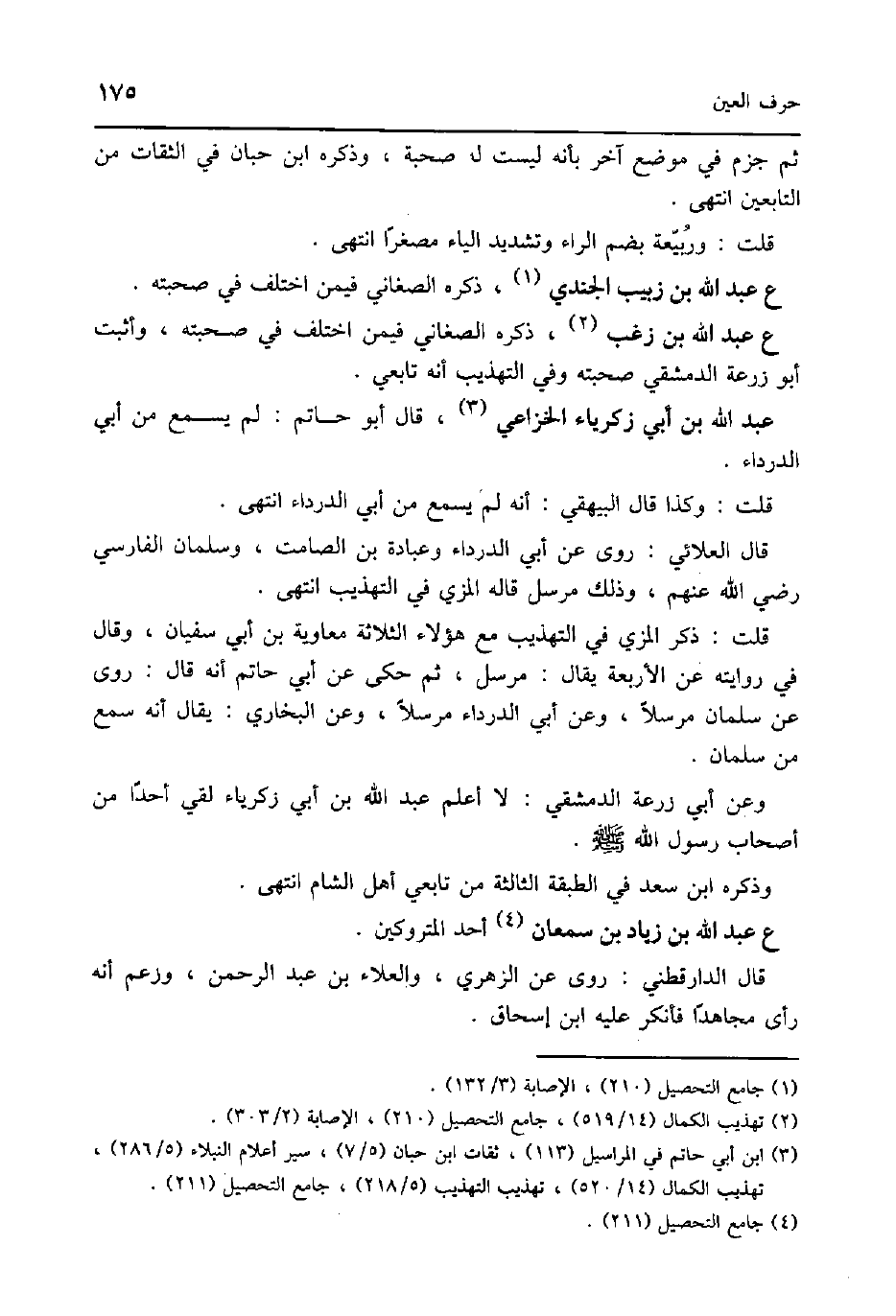 وَعَن أبي زرْعَة الدِّمَشْقِي لَا اعْلَم عبد الله بن أبي زَكَرِيَّا لَقِي احدا من أَصْحَاب رَسُول الله صلى الله عَلَيْهِ وَسلم