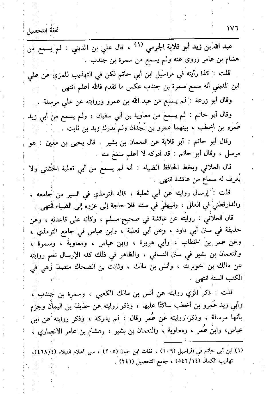 عبد الله بن زيد أَبُو قلَابَة الْجرْمِي قَالَ عَليّ بن الْمَدِينِيّ لم يسمع من هِشَام بن عَامر وروى عَنهُ وَلم يسمع من سَمُرَة بن جُنْدُب