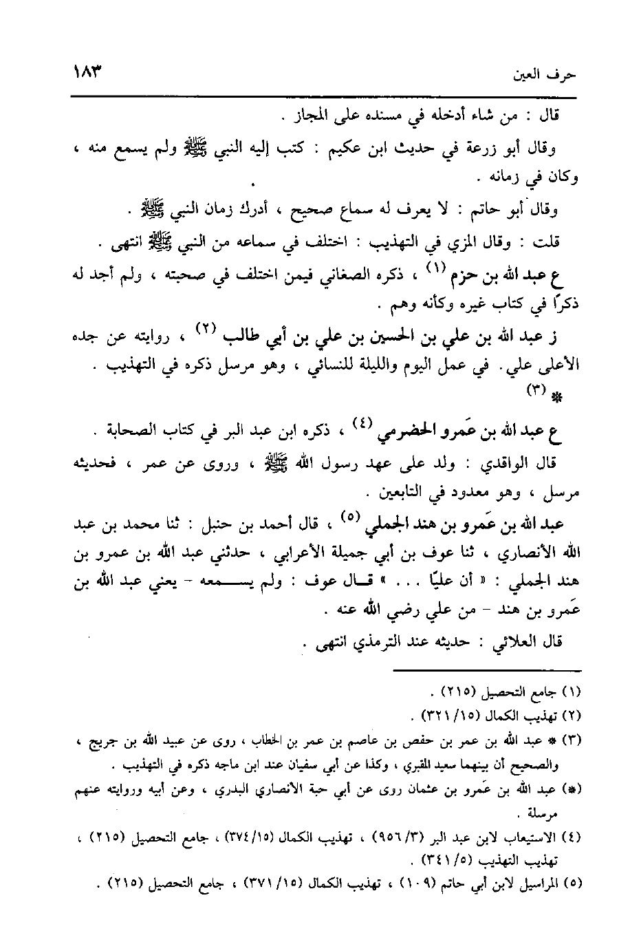 عبد الله بن عَمْرو بن هِنْد الْجملِي قَالَ احْمَد بن حَنْبَل ثَنَا مُحَمَّد بن عبد الله الْأنْصَارِيّ ثَنَا عَوْف بن أبي جميلَة الْأَعرَابِي حَدثنِي عبد الله بن عَمْرو بن هِنْد الْجملِي أَن عليا قَالَ عَوْف وَلم يسمعهُ يَعْنِي عبد الله بن عَمْرو بن هِنْد من عَليّ رَضِي الله عَنهُ