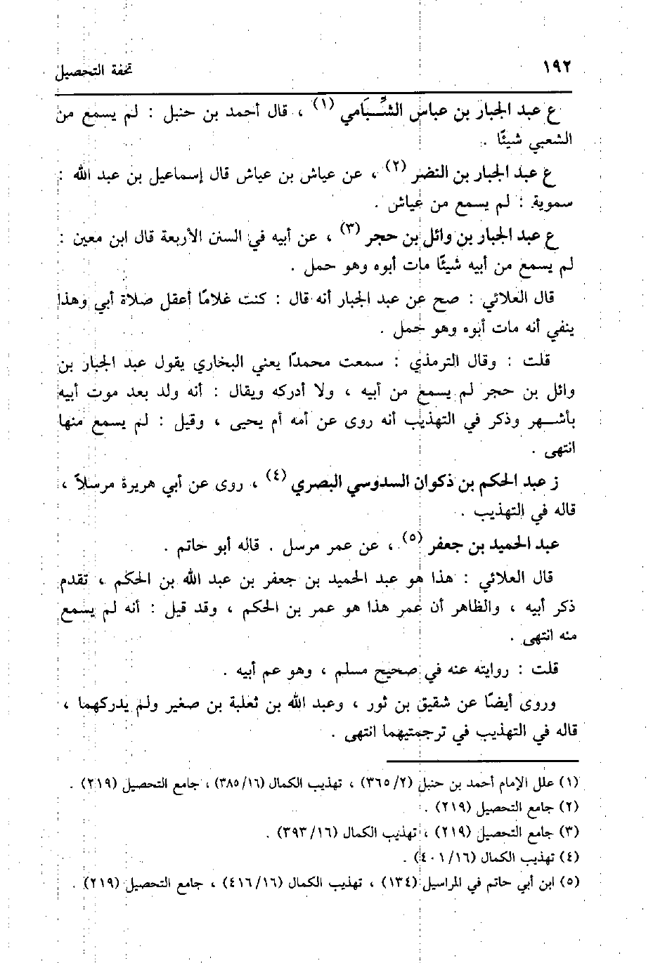 ع عبد الْجَبَّار بن وَائِل بن حجر عَن أَبِيه فِي السّنَن الْأَرْبَعَة قَالَ ابْن معِين لم يسمع من أَبِيه شَيْئا مَاتَ أَبوهُ وَهُوَ حمل
