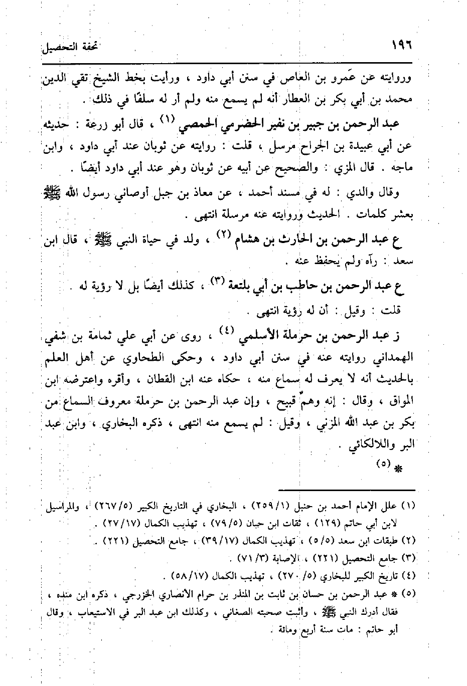 ز عبد الرَّحْمَن بن حَرْمَلَة الْأَسْلَمِيّ روى عَن أبي عَليّ ثُمَامَة بن شفي الْهَمدَانِي رِوَايَته عَنهُ فِي سنَن أبي دَاوُد وَحكى الطَّحَاوِيّ عَن اهل الْعلم بِالْحَدِيثِ أَنه لَا يعرف لَهُ سَماع مِنْهُ حَكَاهُ عَنهُ ابْن الْقطَّان وَأقرهُ وَاعْتَرضهُ ابْن الْمواق وَقَالَ إِنَّه وهم قَبِيح وَإِن عبد الرَّحْمَن بن حَرْمَلَة مَعْرُوف السماع من بكر بن عبد الله الْمُزنِيّ وَقيل لم يسمع مِنْهُ انْتهى ذكره البُخَارِيّ وَابْن عبد الْبر واللالكائي