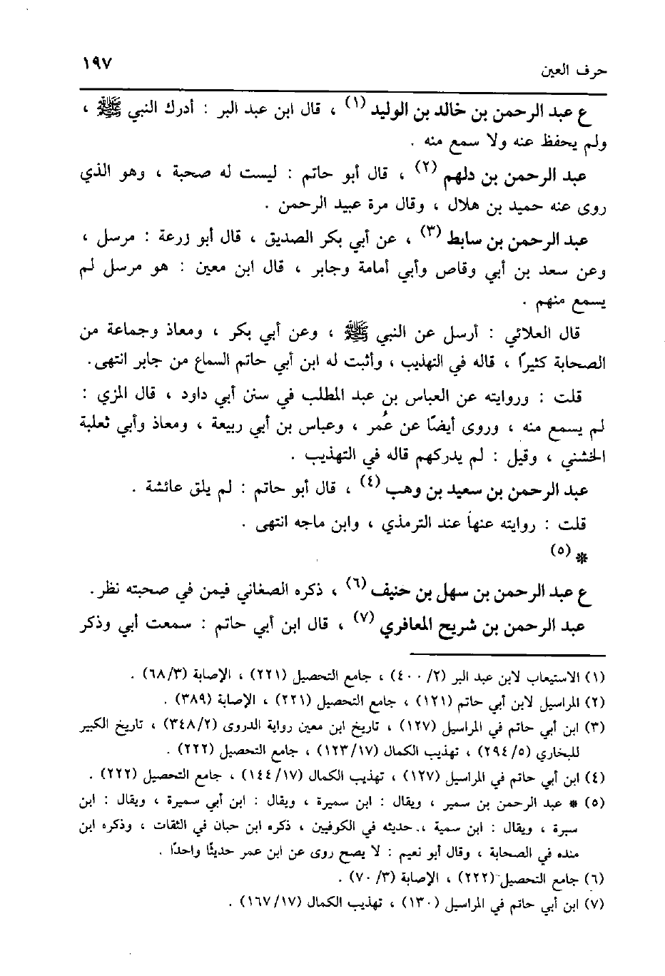 عبد الرَّحْمَن بن سابط عَن أبي بكر الصّديق قَالَ أَبُو زرْعَة مُرْسل وَعَن سعد بن أبي وَقاص وَأبي امامة وَجَابِر قَالَ ابْن معِين هُوَ مُرْسل لم يسمع مِنْهُم