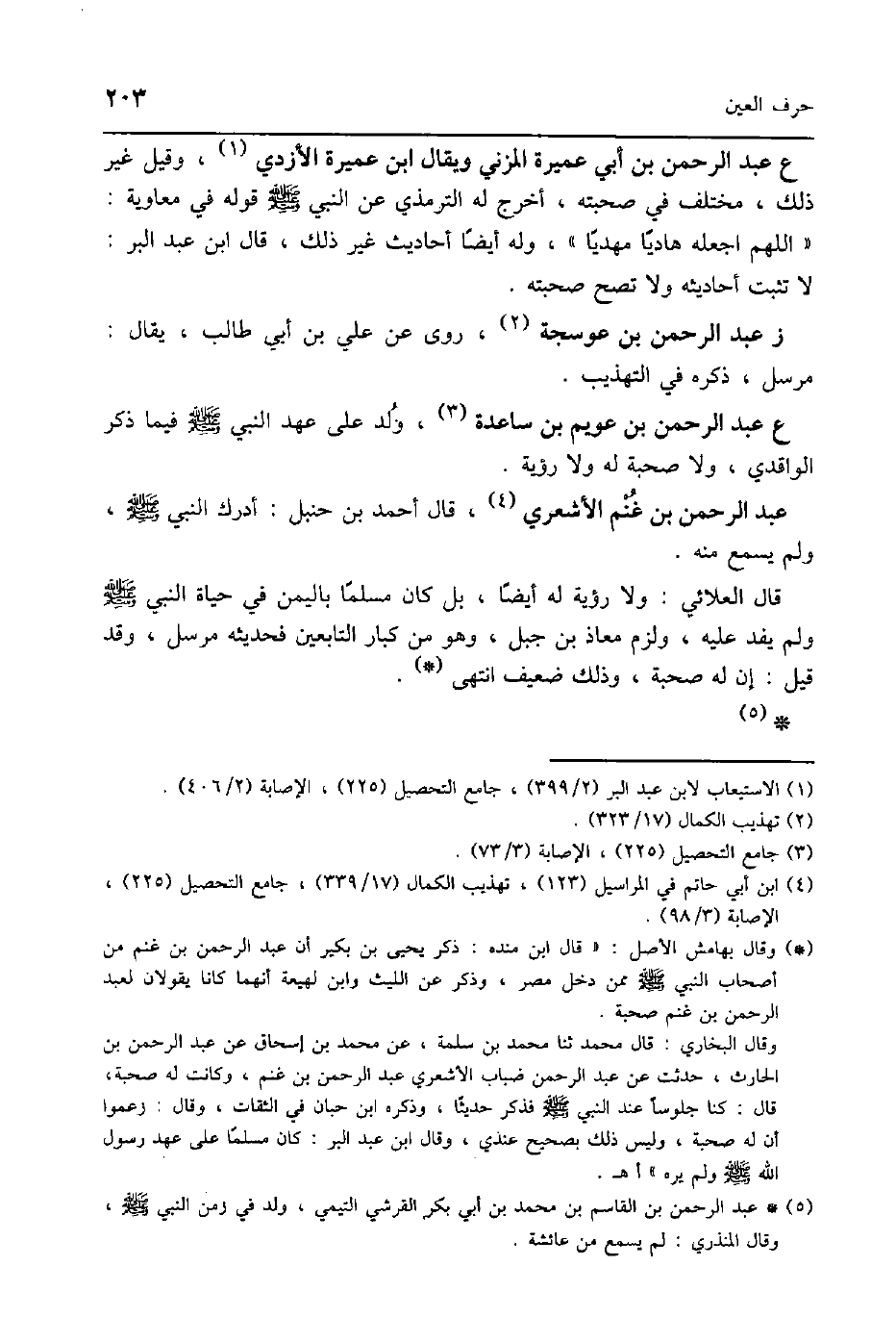 عبد الرَّحْمَن بن غنم الْأَشْعَرِيّ قَالَ احْمَد بن حَنْبَل أدْرك النَّبِي صلى الله عَلَيْهِ وَسلم وَلم يسمع مِنْهُ