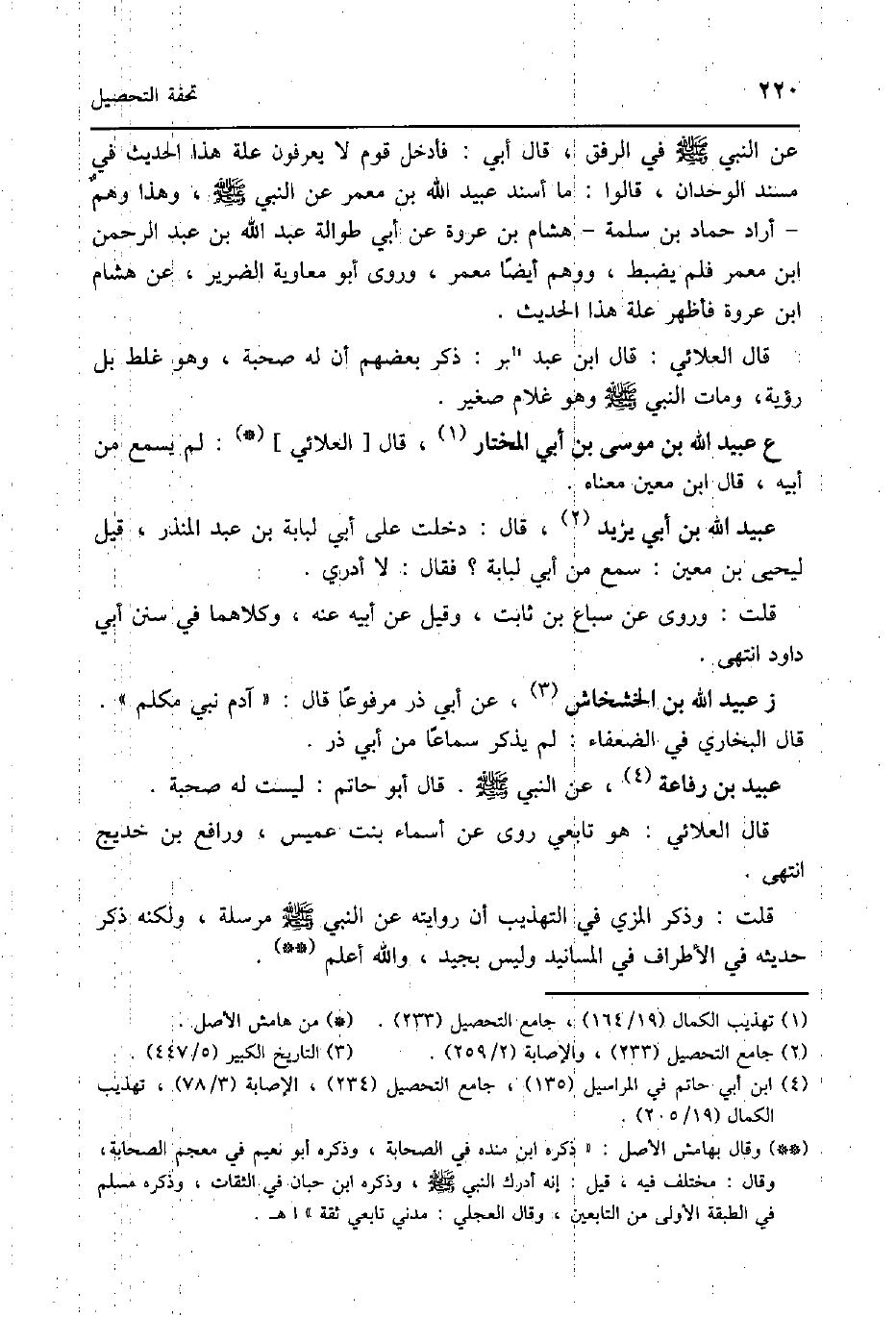 عبيد بن رِفَاعَة عَن النَّبِي صلى الله عَلَيْهِ وَسلم قَالَ أَبُو حَاتِم لَيست لَهُ صُحْبَة