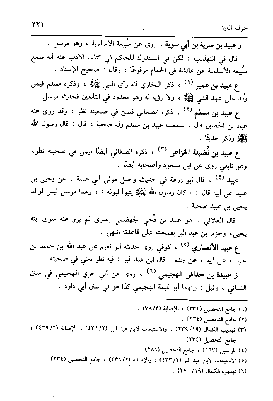 ع عبيد بن عُمَيْر ذكر البُخَارِيّ انه رأى النَّبِي صلى الله عَلَيْهِ وَسلم وَذكره مُسلم فِيمَن ولد على عهد النَّبِي صلى الله عَلَيْهِ وَسلم وَلَا رُؤْيَة لَهُ وَهُوَ مَعْدُود فِي التَّابِعين فَحَدِيثه مُرْسل