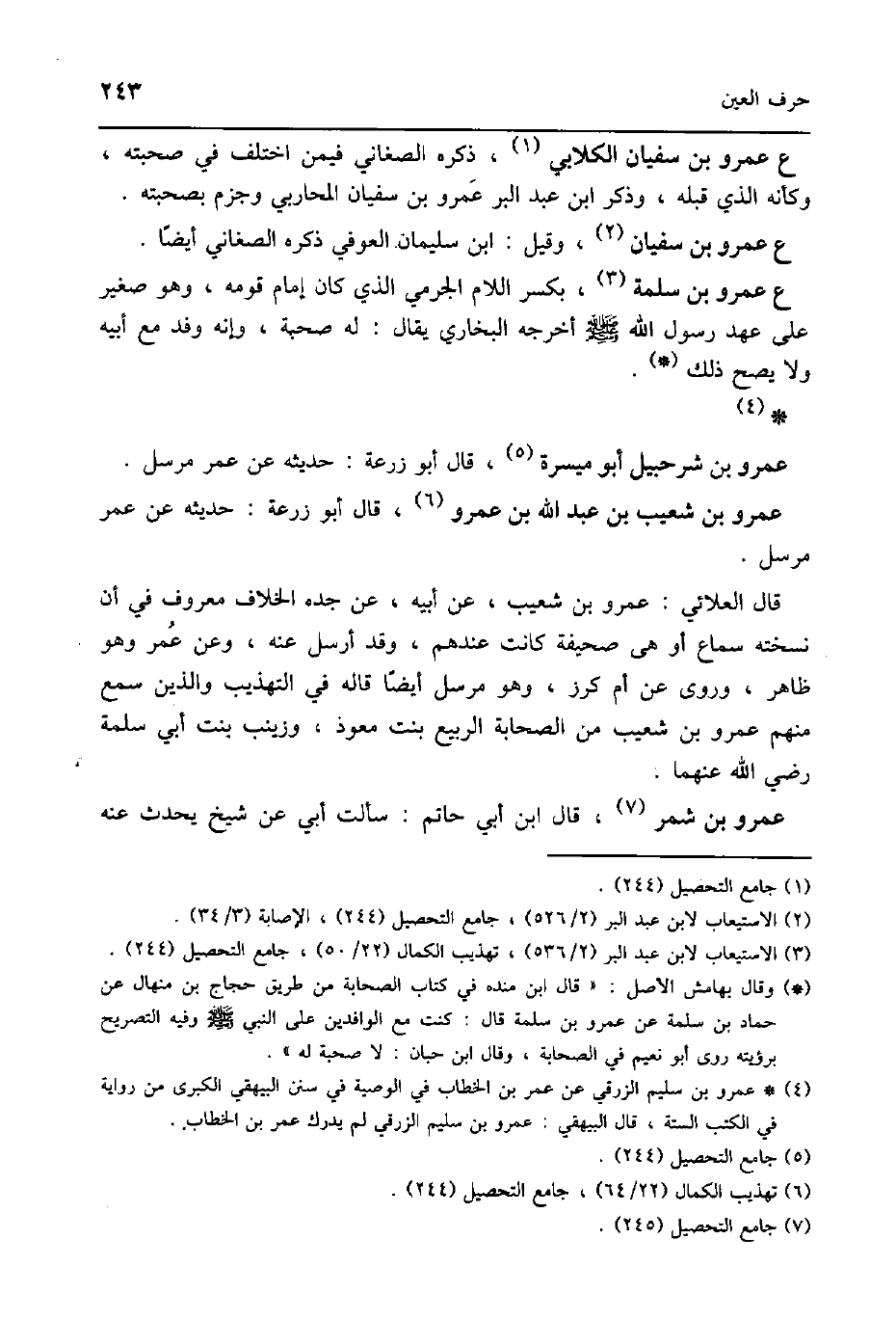 ع عَمْرو بن سَلمَة بِكَسْر اللَّام الْجرْمِي الَّذِي كَانَ امام قومه وَهُوَ صَغِير على عهد رَسُول الله صلى الله عَلَيْهِ وَسلم أخرجه البُخَارِيّ يُقَال لَهُ صُحْبَة وَإنَّهُ وَفد مَعَ أَبِيه وَلَا يَصح ذَلِك