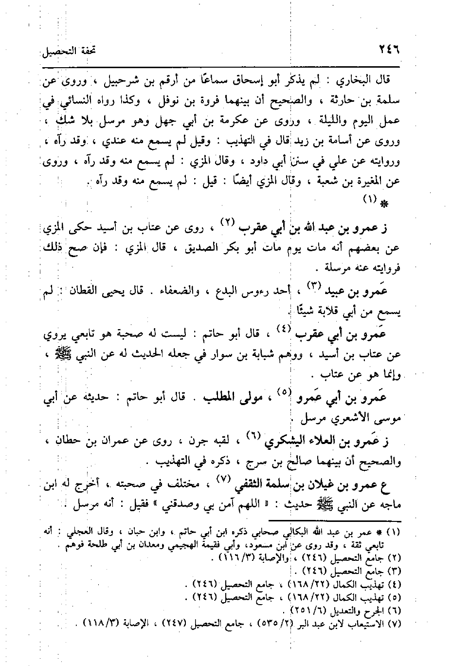 عَمْرو بن أبي عقرب قَالَ أَبُو حَاتِم لَيست لَهُ صُحْبَة هُوَ تَابِعِيّ يروي عَن عتاب بن أسيد وَوهم شَبابَة بن سوار فِي جعله الحَدِيث لَهُ عَن النَّبِي صلى الله عَلَيْهِ وَسلم وَإِنَّمَا هُوَ عَن عتاب