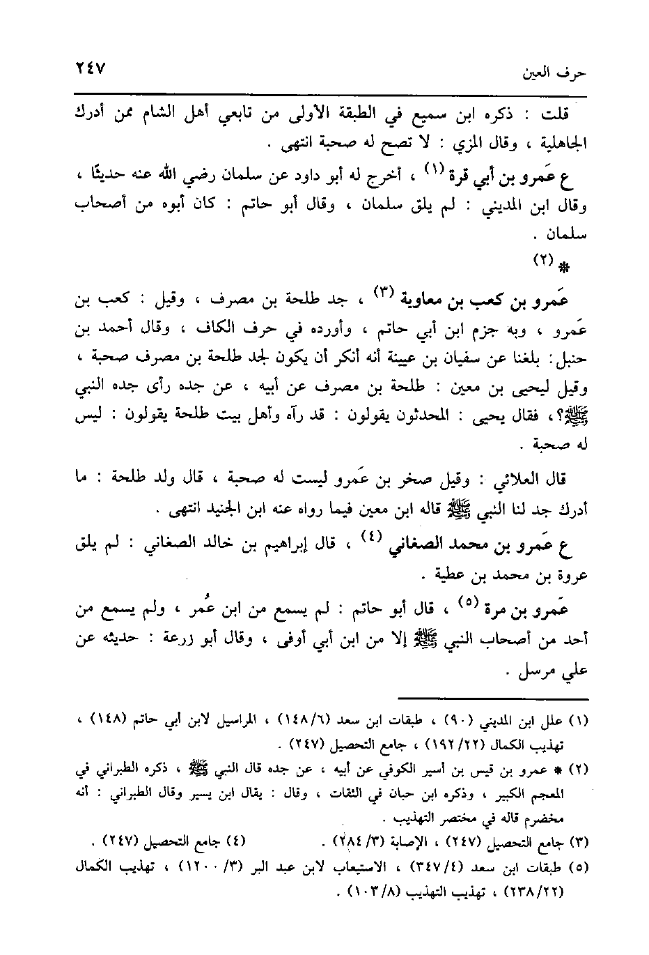 عَمْرو بن مرّة قَالَ ابو حَاتِم لم يسمع من ابْن عمر وَلم يسمع من اُحْدُ من أَصْحَاب النَّبِي صلى الله عَلَيْهِ وَسلم الا من ابْن أبي أوفى وَقَالَ ابو زرْعَة حَدِيثه عَن عَليّ مُرْسل