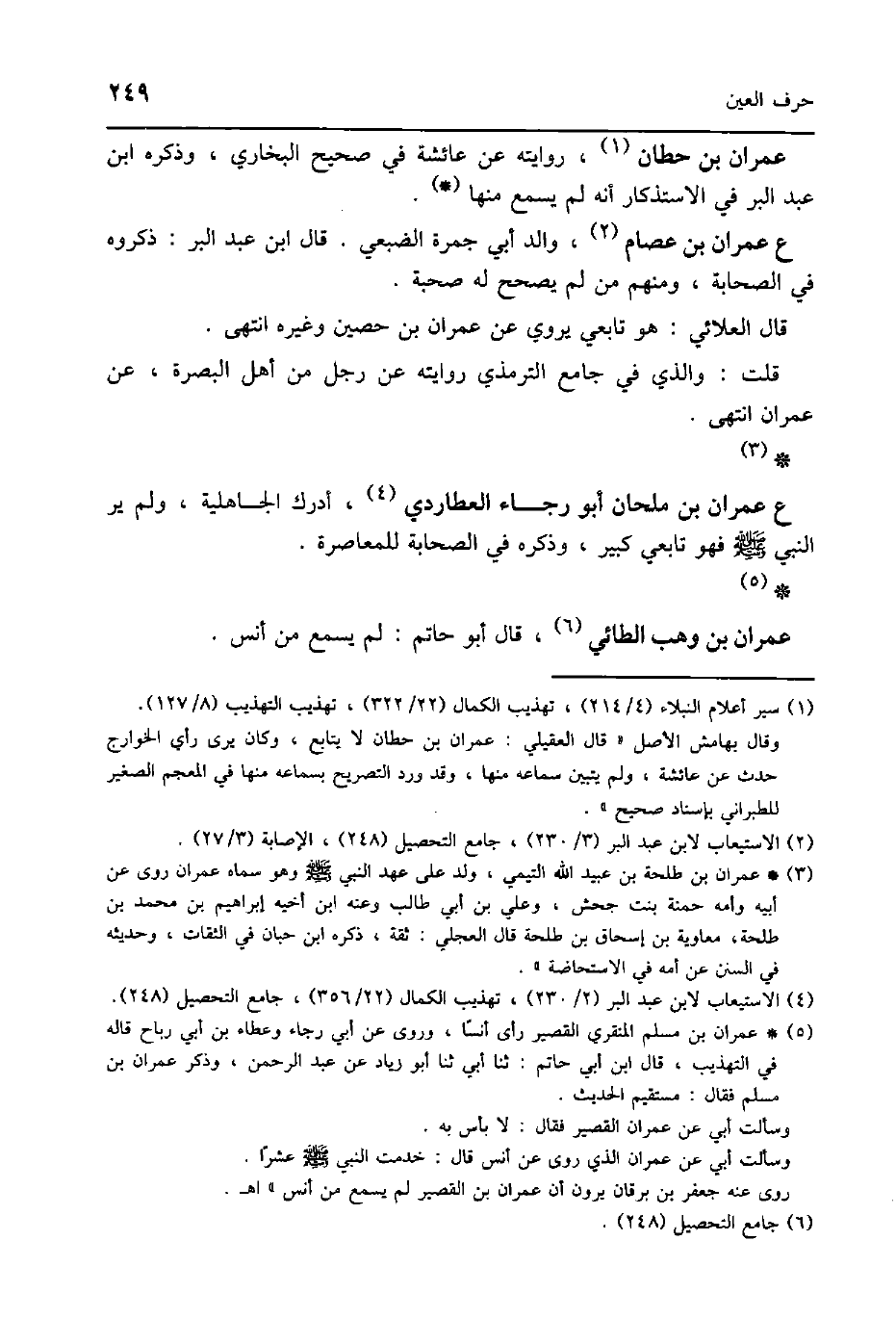 ع عمرَان بن ملْحَان أَبُو رَجَاء العطاردي أدْرك الْجَاهِلِيَّة وَلم ير النَّبِي صلى الله عَلَيْهِ وَسلم فَهُوَ تَابِعِيّ كَبِير وَذكره فِي الصَّحَابَة للمعاصرة