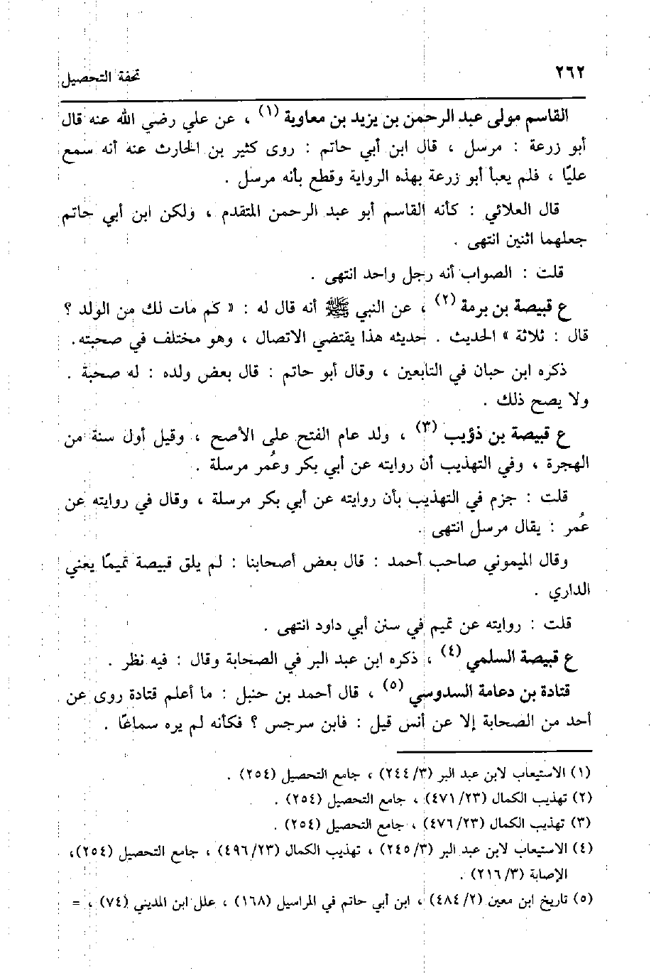 الْقَاسِم مولى عبد الرَّحْمَن بن يزِيد بن مُعَاوِيَة عَن عَليّ رَضِي الله عَنهُ قَالَ أَبُو زرْعَة مُرْسل قَالَ ابْن أبي حَاتِم روى كثير بن الْحَارِث عَنهُ انه سمع عليا قلم يعبأ أَبُو زرْعَة بِهَذِهِ الرِّوَايَة وَقطع بانه مُرْسل