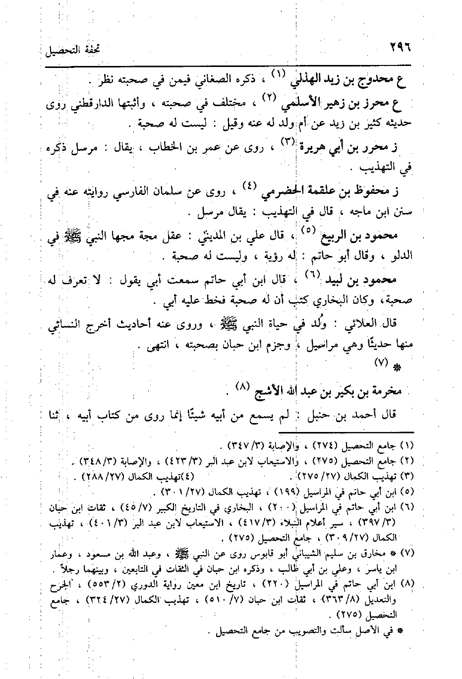 مَحْمُود بن لبيد قَالَ ابْن أبي حَاتِم سَمِعت أبي يَقُول لَا تعرف لَهُ صُحْبَة وَكَانَ البُخَارِيّ كتب ان لَهُ صُحْبَة فَخط عَلَيْهِ أبي