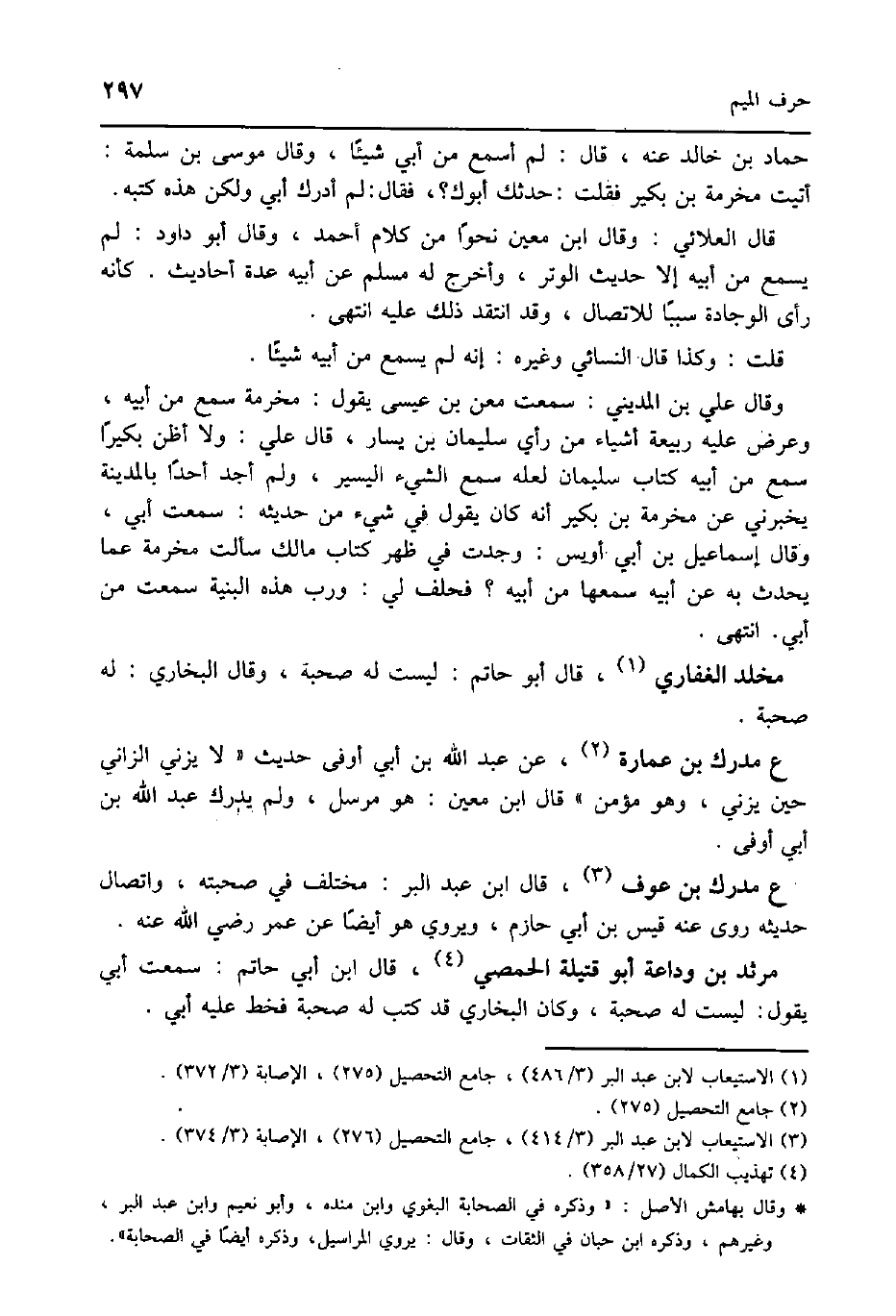 ع مدرك بن عمَارَة عَن عبد الله بن أبي اوفى حَدِيث لَا يَزْنِي الزَّانِي حِين يَزْنِي وَهُوَ مُؤمن) قَالَ ابْن معِين هُوَ مُرْسل وَلم يدْرك عبد الله بن أبي اوفى