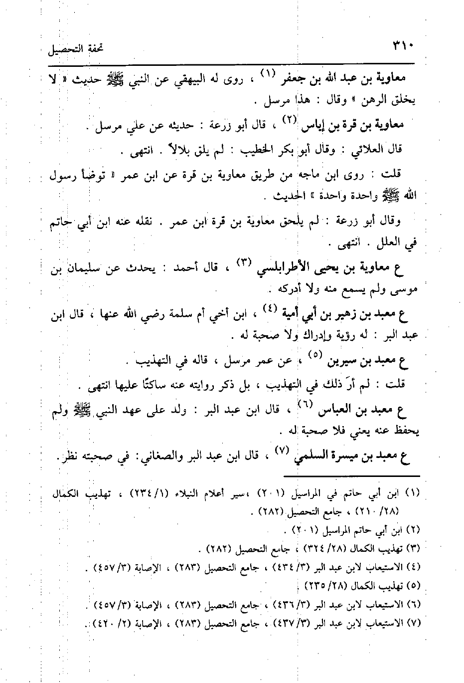 مُعَاوِيَة بن عبد الله بن جَعْفَر روى لَهُ الْبَيْهَقِيّ عَن النَّبِي صلى الله عَلَيْهِ وَسلم حَدِيث لَا يخلق الرَّهْن وَقَالَ هَذَا مُرْسل