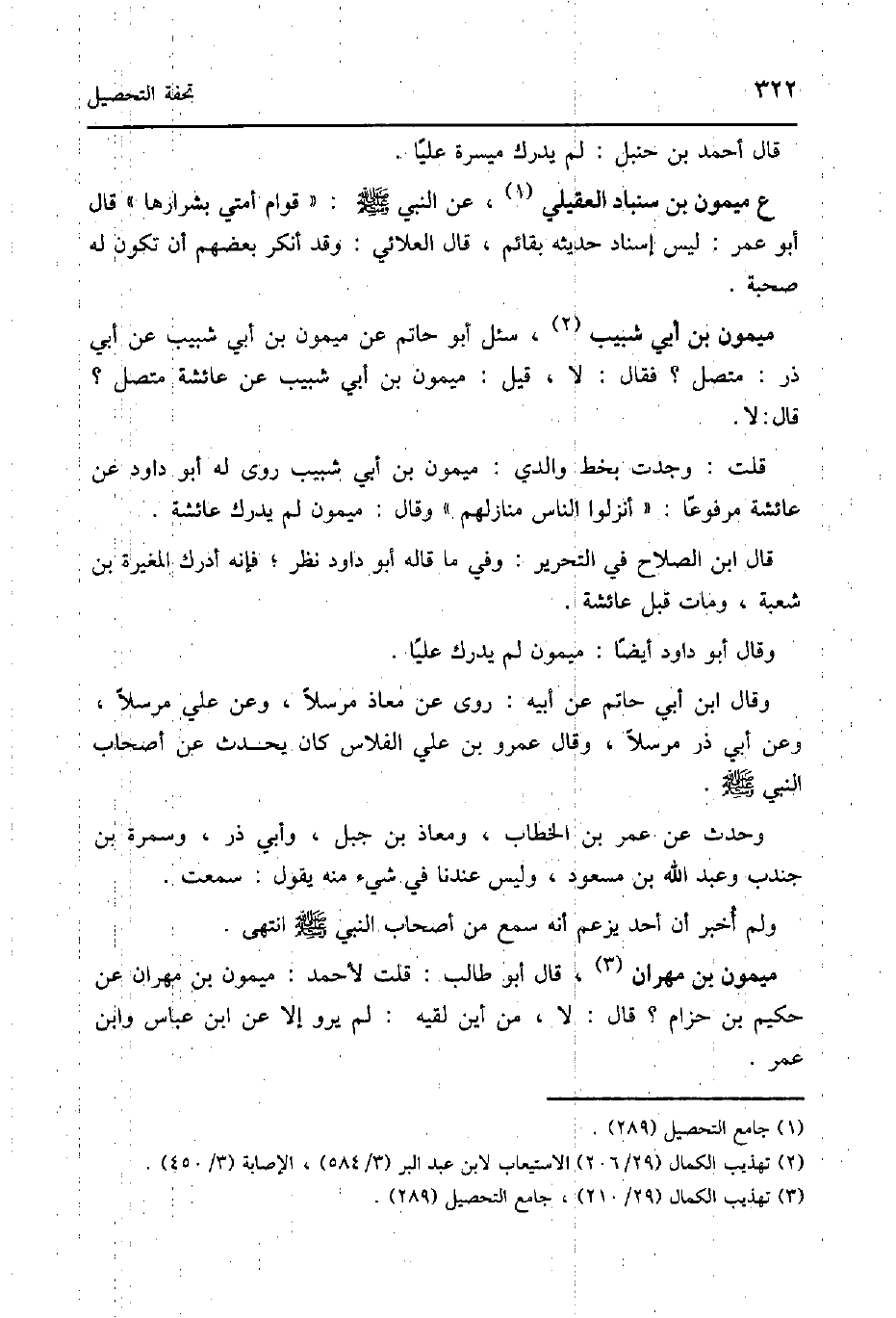 قلت وجدت بِخَط وَالِدي مَيْمُون بن أبي شبيب روى لَهُ أَبُو دَاوُد عَن عَائِشَة مَرْفُوعا أنزلوا النَّاس مَنَازِلهمْ وَقَالَ مَيْمُون لم يدْرك عَائِشَة