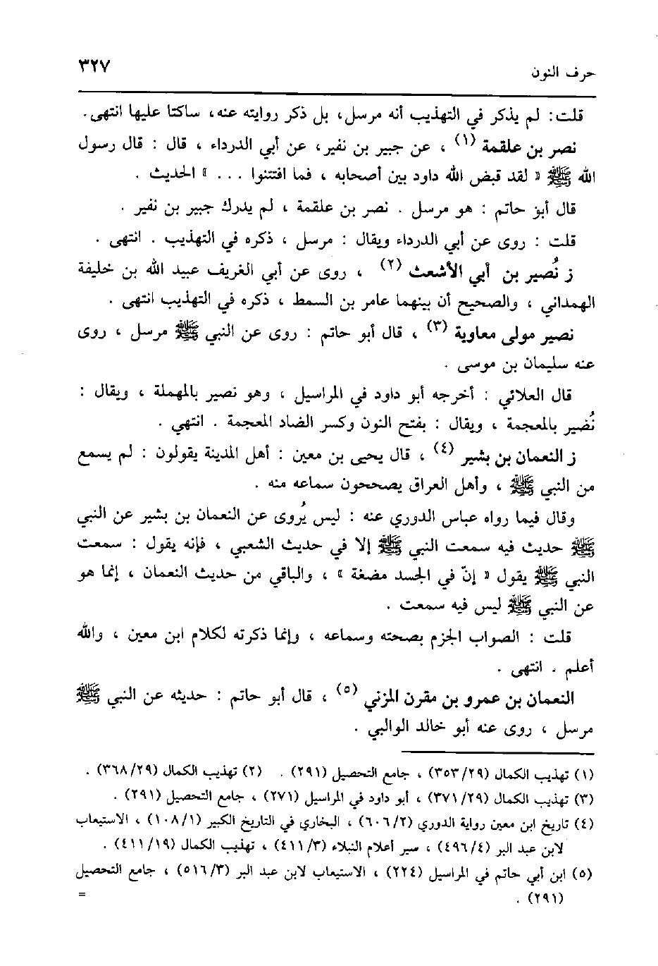 قَالَ العلائي أخرجه أَبُو دَاوُد فِي الْمَرَاسِيل وَهُوَ نصير بِالْمُهْمَلَةِ وَيُقَال نصير بِالْمُعْجَمَةِ وَيُقَال بِفَتْح النُّون وَكسر الضَّاد الْمُعْجَمَة