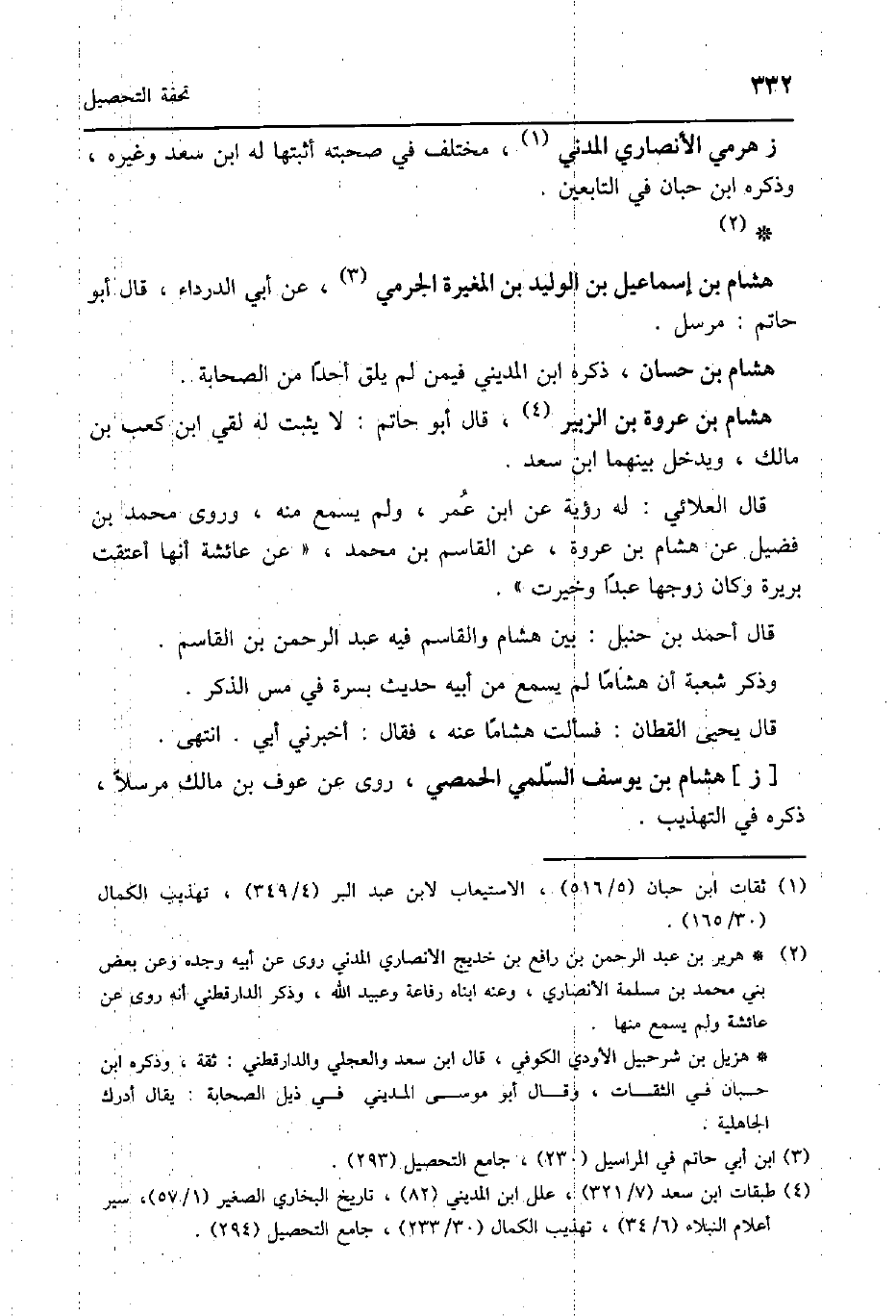 هِشَام بن عُرْوَة بن الزبير قَالَ أَبُو حَاتِم لَا يثبت لَهُ لَقِي ابْن كَعْب بن مَالك وَيدخل بَينهمَا ابْن سعد