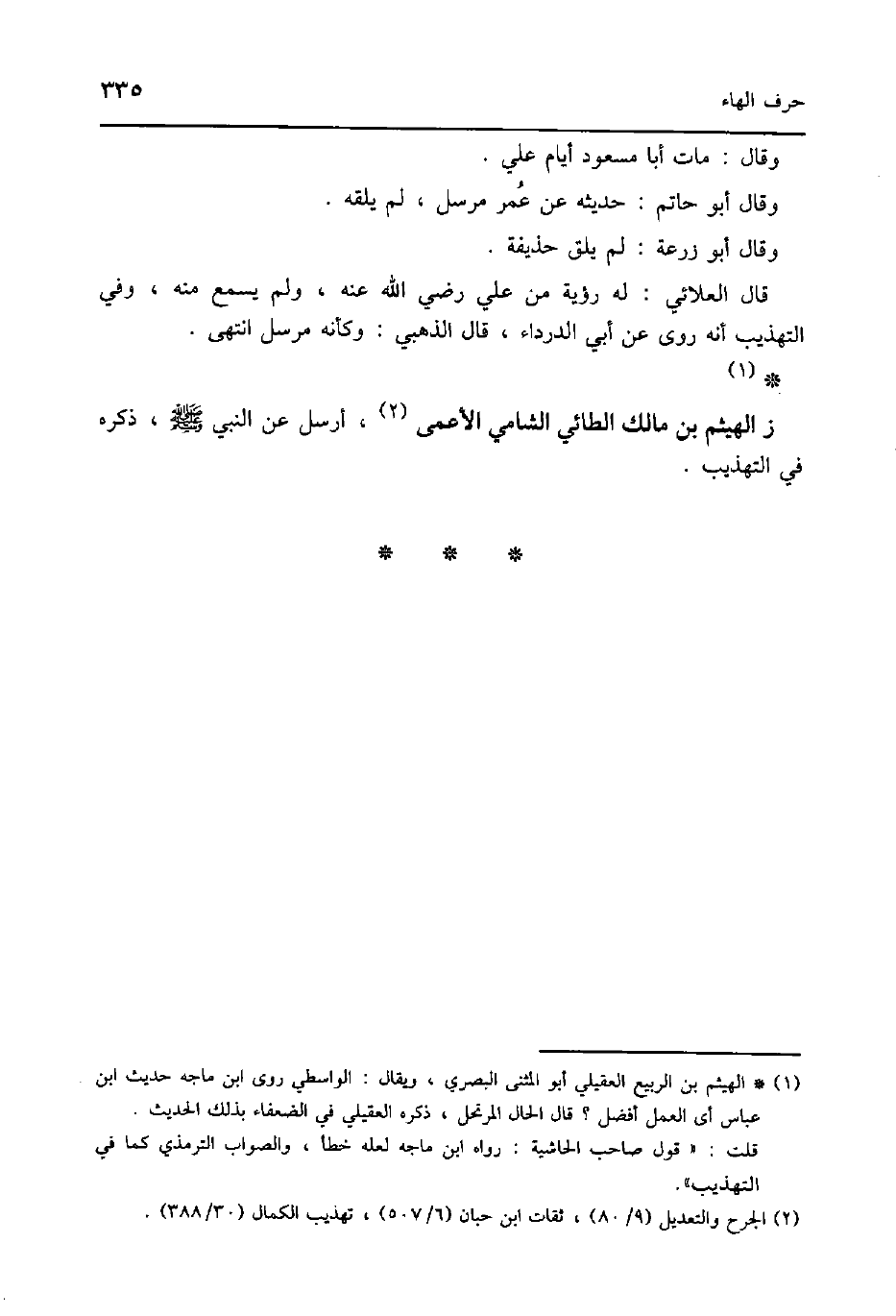 ز الْهَيْثَم بن مَالك الطَّائِي الشَّامي الْأَعْمَى أرسل عَن النَّبِي صلى الله عَلَيْهِ وَسلم ذكره فِي التَّهْذِيب