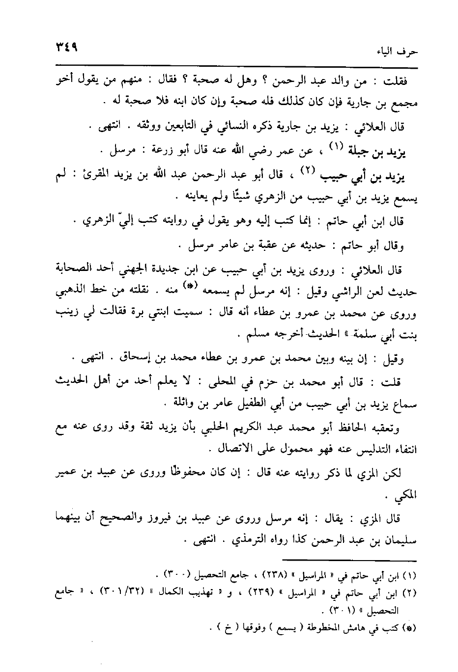 قلت قَالَ ابو مُحَمَّد بن حزم فِي الْمحلى لَا يعلم أحد من أهل الحَدِيث سَماع يزِيد بن أبي حبيب من أبي الطُّفَيْل عَامر بن وَاثِلَة