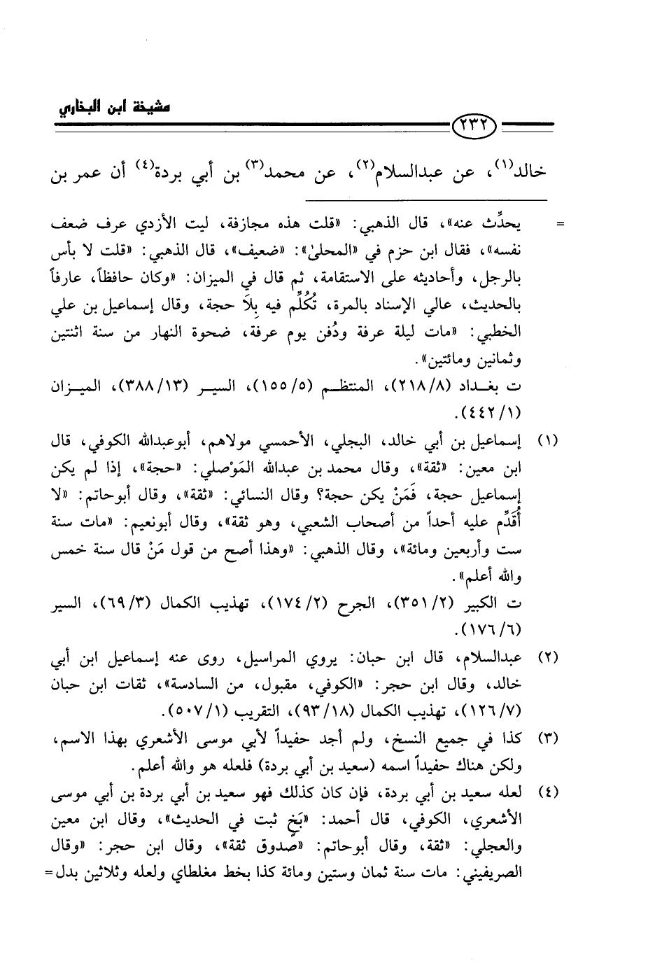 خَالِد، عَنْ عَبْدِ السَّلامِ، عَنْ مُحَمَّد بْن أبي بردة أَن عُمَر بْن