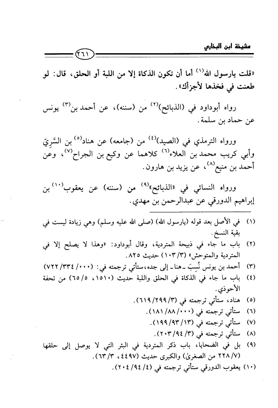 رَوَاهُ أَبُو دَاوُدَ فِي (الذَّبَائِح) مِنْ (سُنَنِهِ) ، عَنْ أَحْمَدَ بْنِ يُونُسَ عَنْ حَمَّادِ بْنِ سَلَمَةَ.