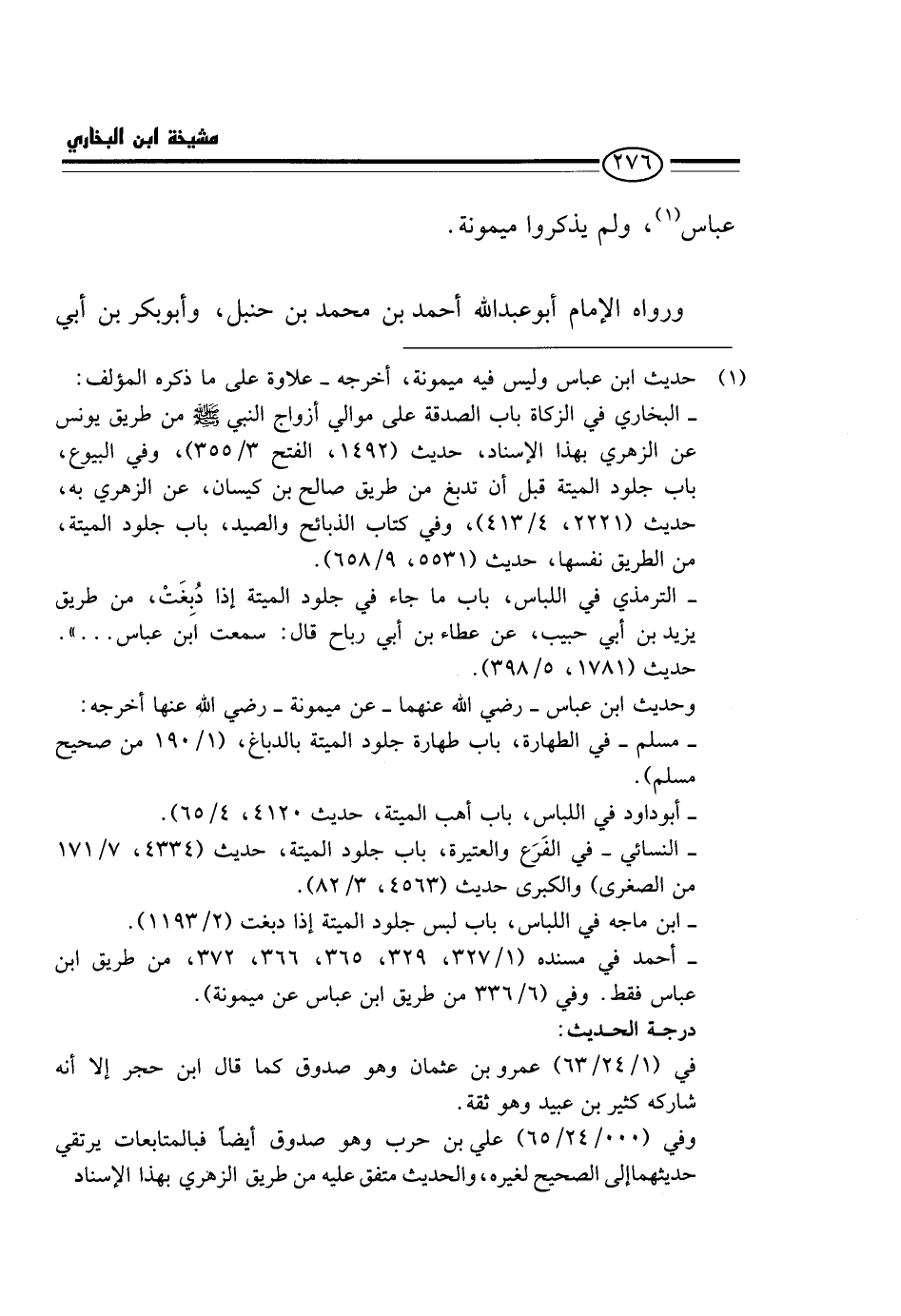 عَبَّاسٍ، وَلَمْ يَذْكُرُوا مَيْمُونَةَ.